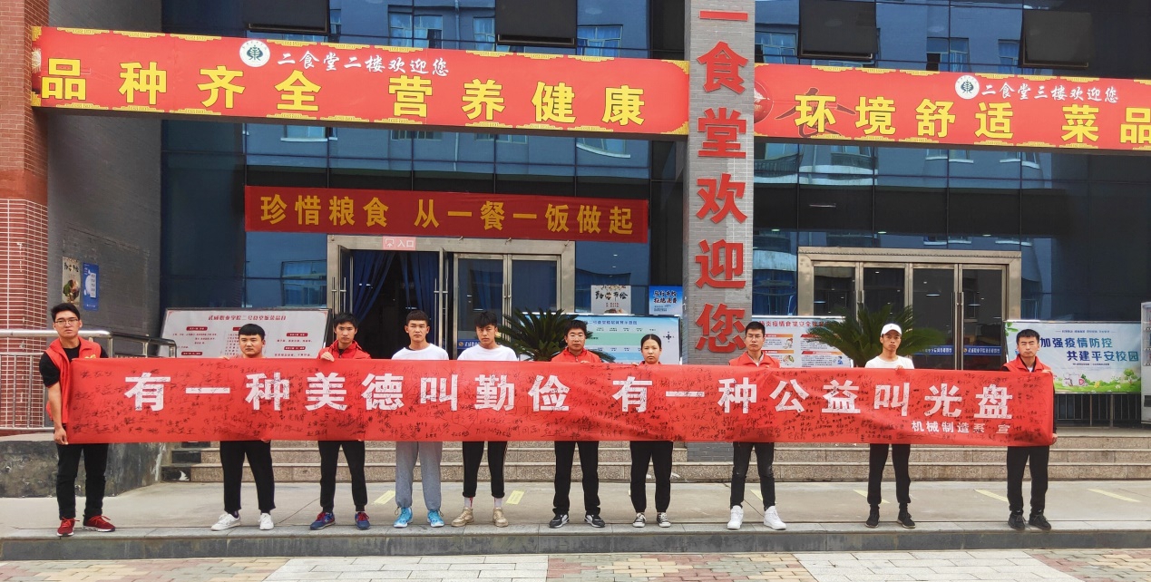 為了大力加強廣大師生節(jié)約糧食和光盤行動的意識,培養(yǎng)健康文明的就餐習(xí)慣。2020年9月16日武威職業(yè)學(xué)院機械制造系在學(xué)校食堂門口舉行了以“節(jié)約糧食?儉以養(yǎng)德”為主題的簽名活動。