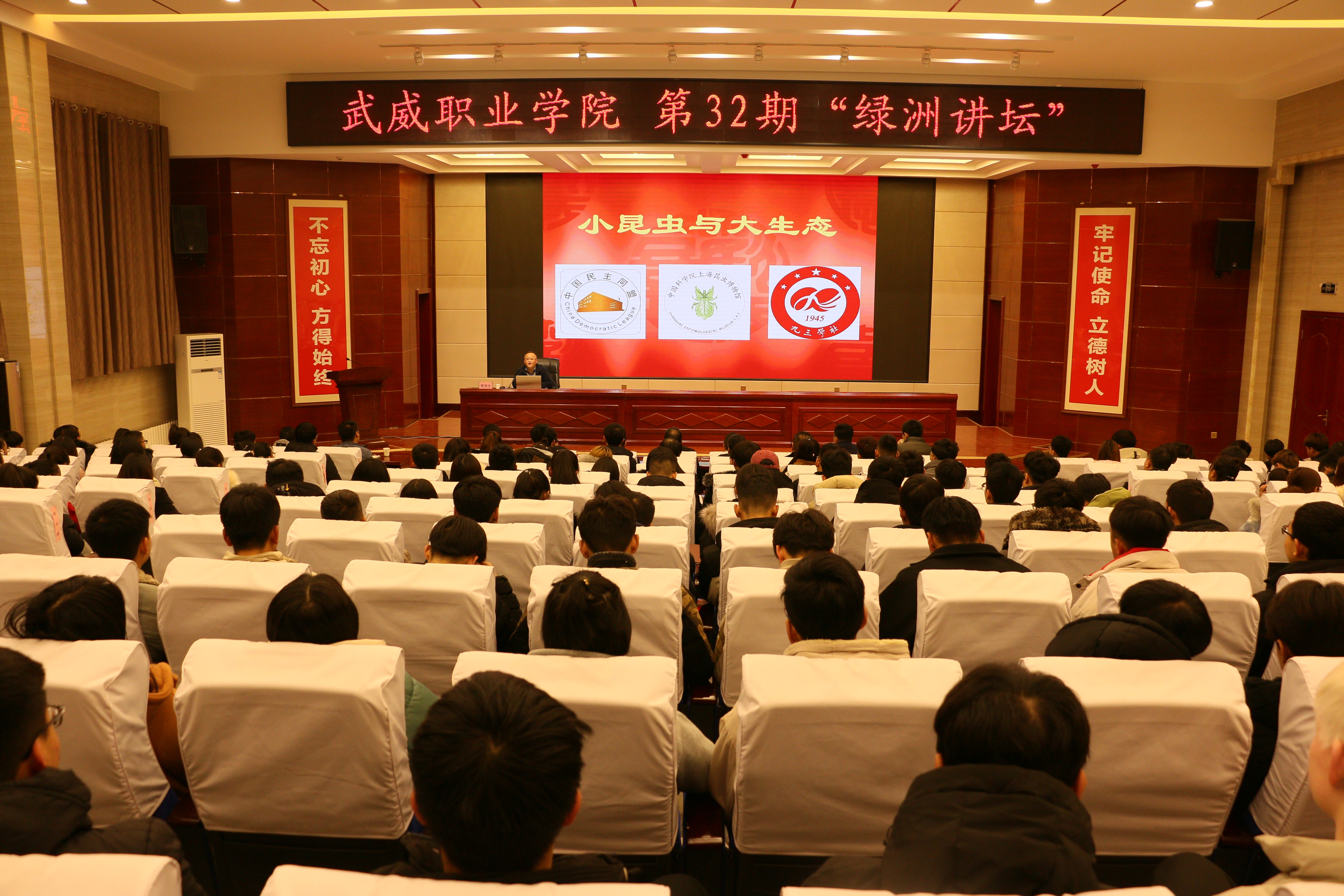 12月18日,武威職業(yè)學(xué)院“綠洲講壇”第32期在學(xué)院菁英廳舉行,本期活動(dòng)邀請(qǐng)到中國(guó)科學(xué)院上海昆蟲(chóng)博物館館長(zhǎng)殷海生教授作主題為“小昆蟲(chóng)與大生態(tài)”的報(bào)告。學(xué)院現(xiàn)代農(nóng)業(yè)技術(shù)系相關(guān)專業(yè)學(xué)生、中科低碳新能源技術(shù)學(xué)院師生代表共220人聆聽(tīng)了報(bào)告。本期講壇由能源工程系黨總支書(shū)記胡建宏主持。
