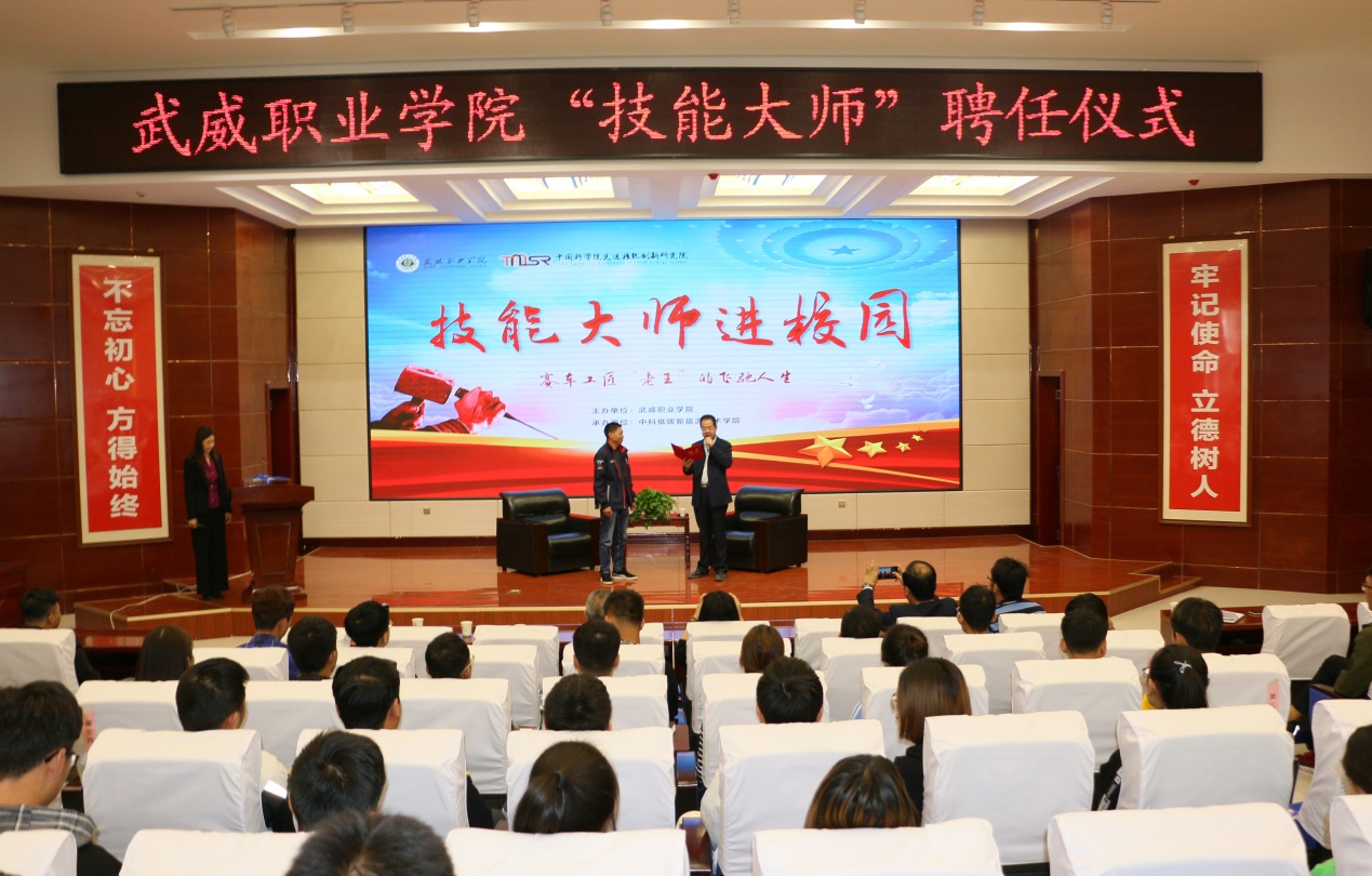 訪談結(jié)束后舉行了學(xué)院“技能大師”聘任儀式,黨委副書(shū)記翟存祥為王文朝頒發(fā)了“技能大師”聘書(shū)。