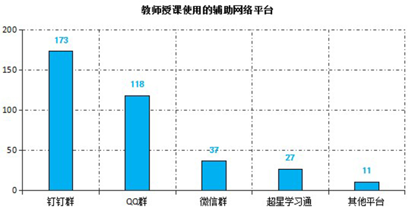 截止3月6日,教師使用武威職業(yè)學(xué)院在線教學(xué)平臺(tái)建設(shè)在線課程226門,使用超星學(xué)習(xí)通開(kāi)展教學(xué)317次,釘釘課堂30次,智慧職教23次,中國(guó)大學(xué)MOOC15次,人衛(wèi)慕課13次,其他平臺(tái)9次。任課教師還選用釘釘群、QQ群或微信群等作為課程輔助交流平臺(tái)實(shí)施教學(xué)組織與管理。在線教學(xué)過(guò)程中,除開(kāi)始時(shí)部分時(shí)段因同時(shí)在線人數(shù)過(guò)多導(dǎo)致網(wǎng)絡(luò)波動(dòng)外,其他時(shí)間教學(xué)平臺(tái)均能穩(wěn)定運(yùn)行,較好的保障了在線教學(xué)的順利實(shí)施。