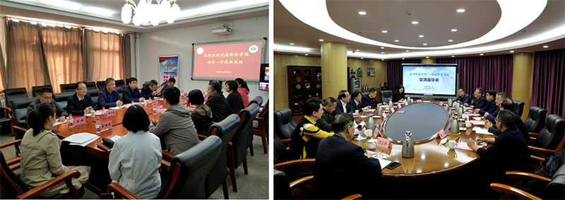 考察組一行分別與天津醫(yī)學(xué)高等??茖W(xué)校、天津職業(yè)大學(xué)進(jìn)行了深入交流座談。天津醫(yī)高專是國(guó)家雙高校中唯一一所衛(wèi)生類學(xué)校,在座談會(huì)上,醫(yī)高專為學(xué)院醫(yī)藥衛(wèi)生類專業(yè)群建設(shè)提出了指導(dǎo)意見(jiàn),介紹了醫(yī)高專“1.5+1.5”學(xué)制安排促就業(yè)、教學(xué)系黨委行政雙組長(zhǎng)抓就業(yè)、就業(yè)工作經(jīng)費(fèi)動(dòng)態(tài)調(diào)整引領(lǐng)就業(yè)的工作機(jī)制,并就下一步共同培養(yǎng)師資、互派青年骨干教師交流學(xué)習(xí)達(dá)成共識(shí)。天津職業(yè)大學(xué)是《天津—甘肅職業(yè)教育協(xié)作實(shí)施方案》合作院校,在天津職大座談會(huì)上,兩校圍繞專業(yè)群組群、產(chǎn)業(yè)學(xué)院組建模式、教學(xué)模式、探索產(chǎn)業(yè)學(xué)院建設(shè)、混合所有制二級(jí)學(xué)院建設(shè)、就業(yè)工作“一對(duì)一”模式、學(xué)生管理經(jīng)驗(yàn)和成果進(jìn)行了分享與交流。劉斌校長(zhǎng)出席并主持會(huì)議,對(duì)學(xué)院的雙高建設(shè)給予了特別關(guān)心與指導(dǎo)。他希望,雙方作為兄弟院校,要進(jìn)一步加強(qiáng)交流合作,努力為推動(dòng)?xùn)|西協(xié)作和武威職業(yè)教育高質(zhì)量發(fā)展做出新的更大的貢獻(xiàn)。
