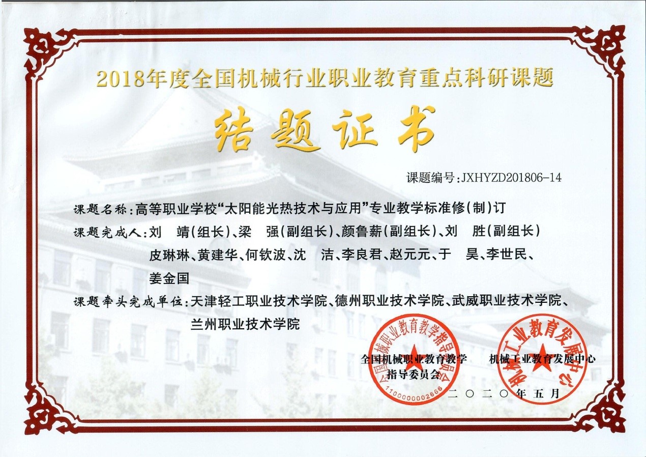 “太陽能光熱技術(shù)與應(yīng)用”專業(yè)國(guó)家教學(xué)標(biāo)準(zhǔn)通過專家評(píng)審