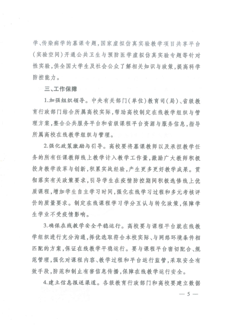 教育部做好普通高等學校在線教學組織與管理工作的指導意見