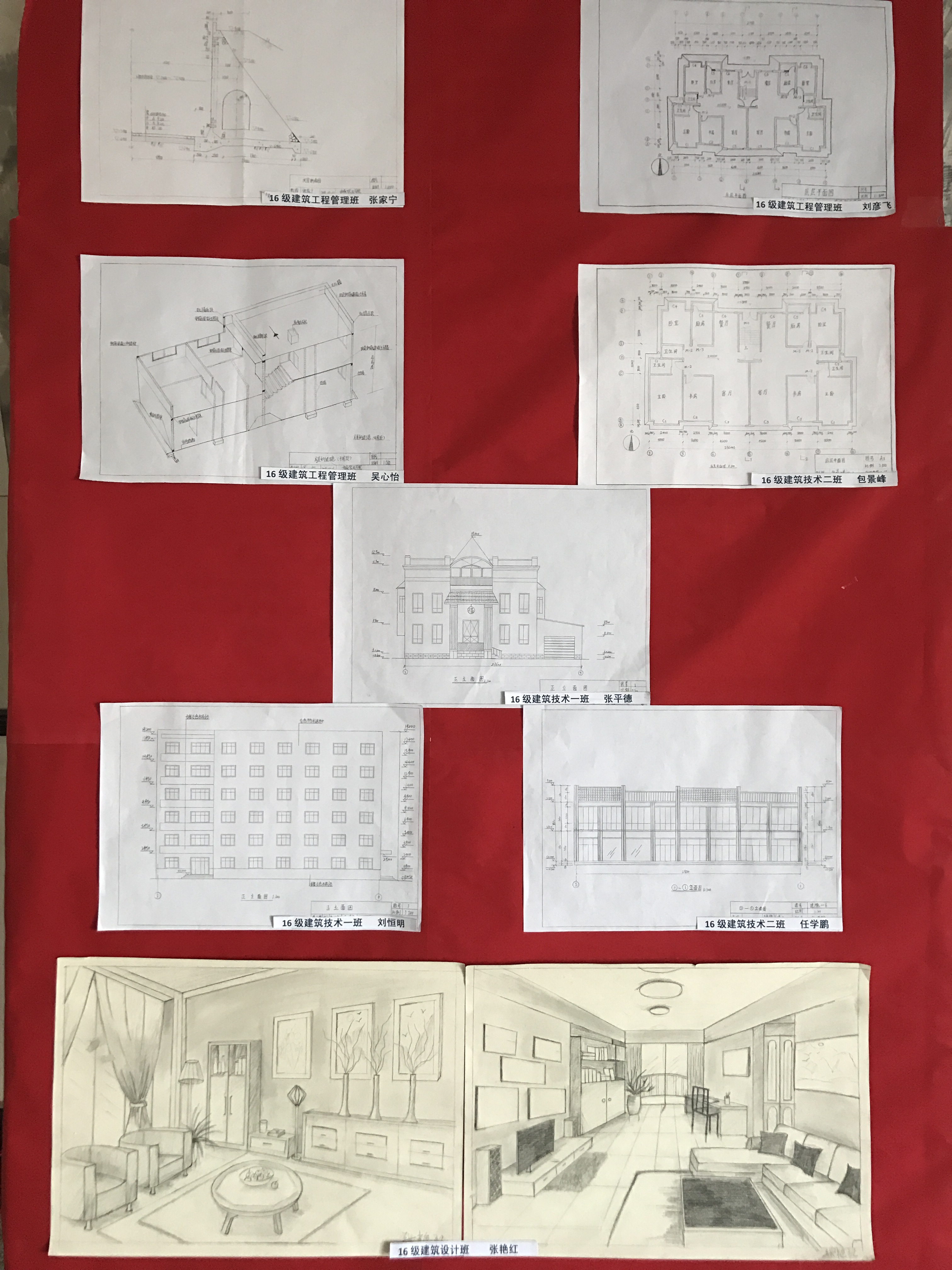 本次大賽重點(diǎn)由16級各專業(yè)新生參加,歷時(shí)一個(gè)月。經(jīng)過前期精心的安排,學(xué)生自選圖幅,作品內(nèi)容以常見的建筑形式和學(xué)院樓宇的外部造型為題材,重點(diǎn)反映學(xué)生對建筑物平面、立面等專業(yè)繪圖知識的理解程度。截止展出前共收到30余件參賽作品,經(jīng)過評審老師認(rèn)真、嚴(yán)格的審查,最終展出17幅。