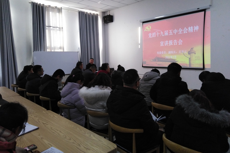 黨委委員、副院長(zhǎng)王守云為教學(xué)管理第一、第二黨支部宣講黨的十九屆五中全會(huì)精神