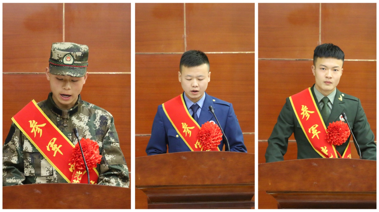 電子信息工程系學(xué)生王鴻代表學(xué)院入伍新兵發(fā)言,表示將不負(fù)母校培養(yǎng),傳承戍邊英雄精神,爭(zhēng)取在軍營(yíng)中建功立業(yè),報(bào)效國(guó)家,展現(xiàn)武職學(xué)子良好的精神風(fēng)貌。