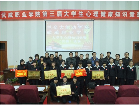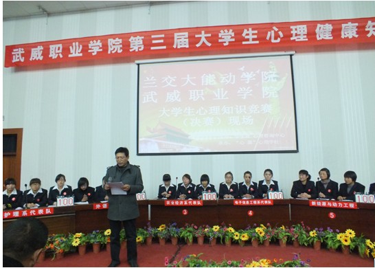 此次比賽歷時一個月,分為初賽和決賽兩部分。全院13個系和蘭交大能動學(xué)院代表隊參加了初賽的角逐,最終蘭交大能動學(xué)院、電子信息工程系、護(hù)理系、藥學(xué)系、外語系、農(nóng)經(jīng)系六支代表隊進(jìn)入決賽。競賽分必答題、搶答題、風(fēng)險題、觀眾互動四個環(huán)節(jié),內(nèi)容涉及心理理論知識、心理保健常識、心理科普知識等,融趣味性、教育性、普及性于一體。在比賽開始之前,各參賽隊一一向大家作了別出心裁的介紹,并喊出自己隊的參賽口號。比賽中,臺上選手們“八仙過海,各顯其能”,展現(xiàn)了他們雄厚的實力,隊員踴躍發(fā)言,積極搶答,臺下親友團(tuán)搖旗吶喊,為選手加油,高潮迭起。現(xiàn)場始終洋溢著緊張、熱烈、和諧的氣氛。最終,護(hù)理系代表隊以他們精彩出色的表現(xiàn)奪得一等獎,能動學(xué)院代表隊、外語系代表隊獲得二等獎,藥學(xué)系、電信系、農(nóng)經(jīng)系代表隊獲得三等獎。