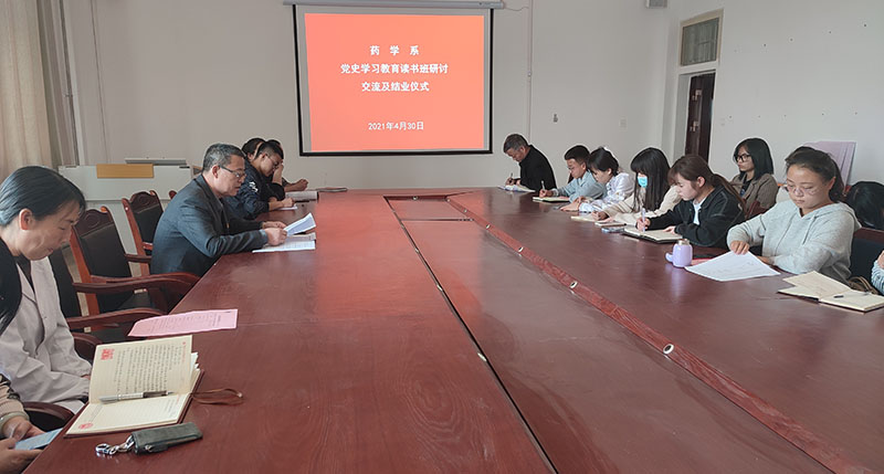 4月27日至4月30日,藥學系舉辦黨史學習教育專題讀書班。讀書班采取“專題學習+理論宣講+現場參觀+集體研討”的方式進行,讀書班學習由藥學系黨總支書記、主任魏潤明主持,全體黨員、專兼職教師和入黨積極分子參加了讀書班學習。