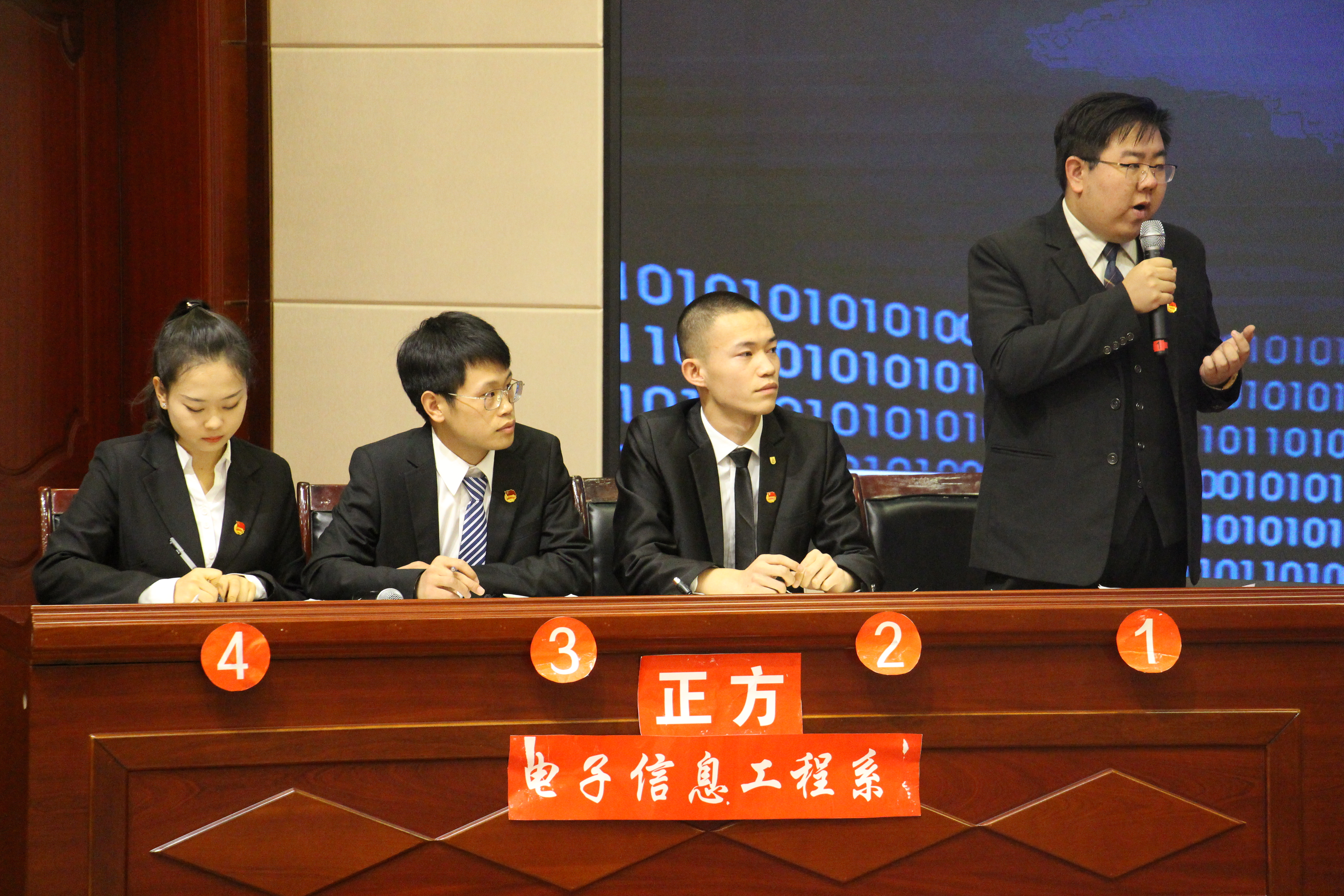 經(jīng)過11場次的比賽,電子信息工程系代表隊(duì)和藥學(xué)系代表隊(duì)進(jìn)入最后決賽。決賽現(xiàn)場,正反雙方針對高素質(zhì)技術(shù)技能人才以“仁”還是以“智”為先拉開激烈交戰(zhàn)。雙方選手在立論、駁立論、攻辯等環(huán)節(jié)中思路清晰,引經(jīng)據(jù)典,高潮迭起。自由辯論環(huán)節(jié),雙方唇槍舌戰(zhàn),針鋒相對,步步為營,愈辯愈烈,精彩紛呈,觀眾也積極互動(dòng),現(xiàn)場氣氛十分活躍。