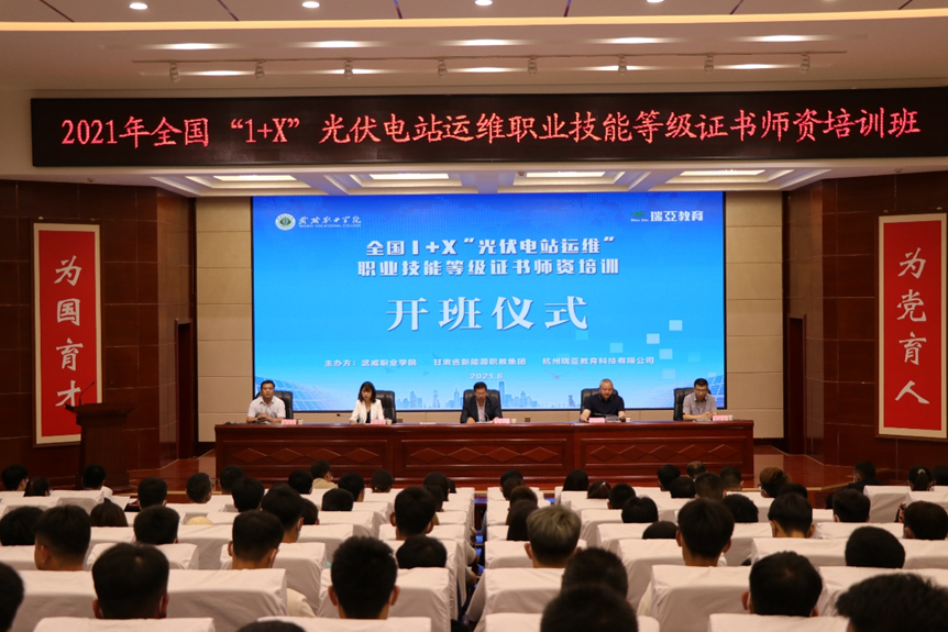 為貫徹落實《國家職業(yè)教育改革實施方案》,穩(wěn)步推進“1+X證書”制度試點工作,提高職業(yè)院校教師參與職業(yè)技能等級培訓、評價的能力。6月25日-6月30日,學院聯(lián)合評價組織機構杭州瑞亞教育科技有限公司和甘肅省新能源職教集團舉辦的全國“1+X”光伏電站運維職業(yè)技能等級證書中級師資培訓班圓滿完成。6月25日學院在菁英廳舉行開班儀式,學院副院長張開禮、杭州瑞亞教育科技有限公司院校合作事業(yè)部總經(jīng)理桑寧如、蘭州交通大學新能源學院碩士生導師楊捷媛博士、來自全國院校的28名骨干教師以及中科低碳新能源技術學院師生代表共220人參加開班儀式。開班儀式由院黨委委員、副院長張開禮主持。