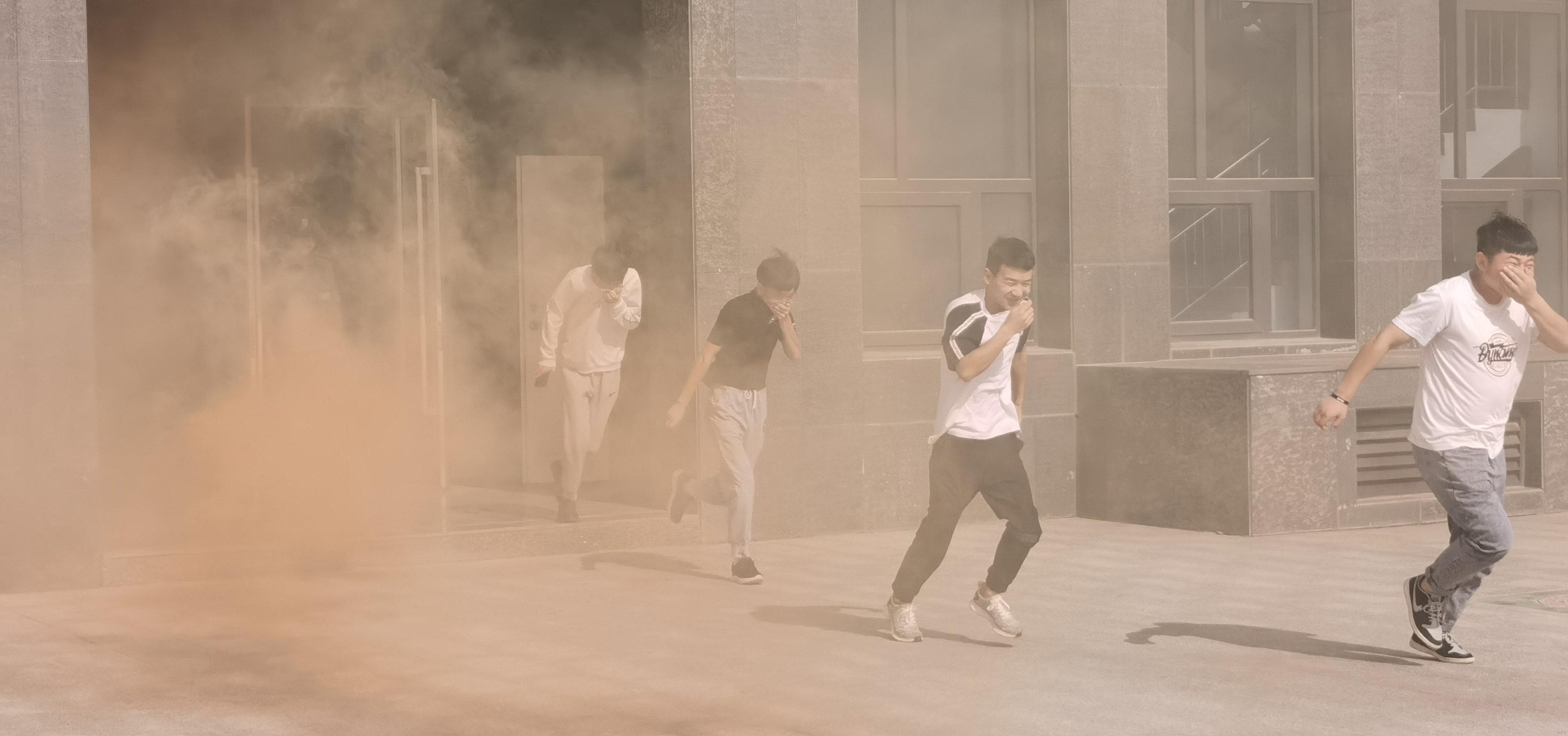 下午4點46分,疏散演練正式開始。隨著消防警報響起,各教學班上課教師立即停止上課組織學生疏散,學生用濕毛巾捂住口鼻,按照逃生路線有序疏散。5分鐘內8000多名參演師生全部撤離到安全地帶,演練取得圓滿成功。