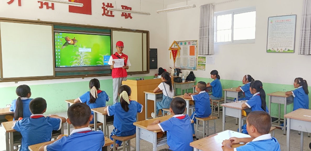 在活動期間,實踐隊員們先后前往了甘肅省武威市涼州區(qū)豐樂鎮(zhèn)九年制學(xué)校、長城鎮(zhèn)長富小學(xué)、黃羊鎮(zhèn)青少年興趣特長班、雙城鎮(zhèn)少兒書法班、古浪縣富民小學(xué)等地進行推普活動,為近1000名中小學(xué)生開展以“說好普通話,做中國好娃娃”為主題的普通話推廣專題教育和素質(zhì)拓展活動。經(jīng)過調(diào)研得知,這些孩子大多是來自貧困家庭的留守兒童,孩子們性格靦腆,不擅表達。為此,實踐隊員們制定了開放互動的活動方案,從有趣的語音小游戲、趣味口部操,到聲韻母的發(fā)音、拼讀易錯字,再到讓孩子們勇敢站在講臺上朗讀、講故事,循序漸進地糾正孩子們的發(fā)音。為了提高孩子們參與的積極性,隊員們?yōu)楸敬位顒泳臏蕚淞霜勂?,鼓勵孩子們在課堂上踴躍表現(xiàn)自己,在獲得知識的同時增強自信。