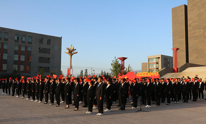奮斗正當(dāng)時,青春獻(xiàn)給黨!為慶祝新中國成立72周年,深入貫徹落實習(xí)近平總書記在慶祝建黨成立100周年大會上的重要講話精神,引導(dǎo)全院廣大青年大力弘揚以愛國主義為核心的偉大民族精神,10月1日早上,學(xué)院在圖書館前廣場舉辦“請黨放心,強國有我”主題升國旗儀式。學(xué)院全體院領(lǐng)導(dǎo)、中層干部代表、師生代表300余人參加活動。