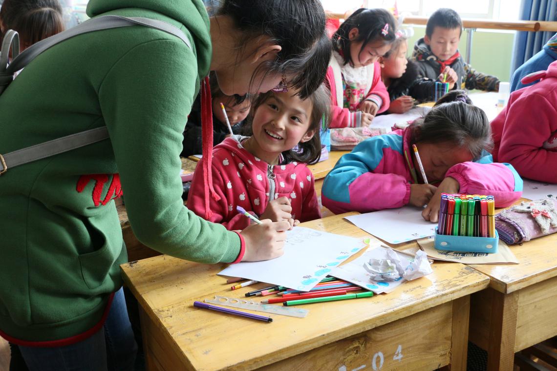 接下來的互動環(huán)節(jié),志愿者們將自己的美術作品和手工藝作品進行了展覽,并協助小朋友們完成全家福的創(chuàng)作和手工藝品的制作。畫一幅全家福,讓他們感受到家的溫暖,疊一只小船載著“他們”的未來揚帆遠航,疊一顆“紅心”為他們送去最真摯的祝福,愿他們茁壯成長。最后由四壩中學張校長為表現突出的小朋友頒發(fā)了紀念品,這一環(huán)節(jié)不僅激發(fā)了小朋友們學習繪畫和手工藝品的興趣,而且提高了小朋友的動手能力,交流能力,同時提高了志愿者的服務能力。