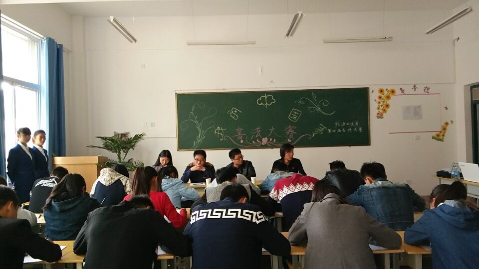 能源工程系第四屆書法大賽于2015年10月20日下午5點在明德樓104教室隆重舉行。本次書法大賽經(jīng)過層層海選,最終有18位同學(xué)進(jìn)入決賽。這次書法大賽邀請了侯舵、付江鵬兩位老師。