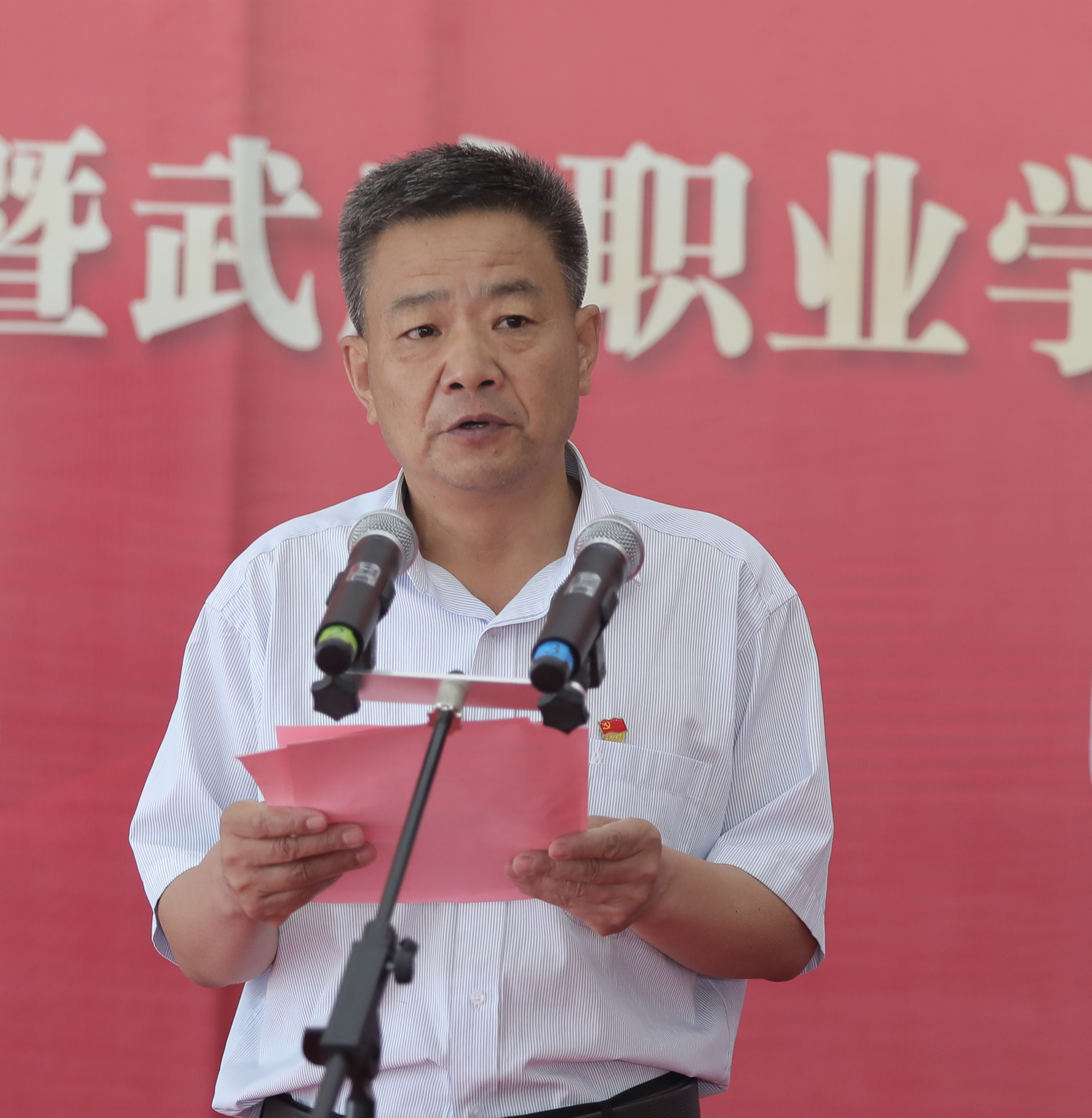 學(xué)院客座教授、涼州區(qū)政協(xié)原副主席王大臣先生在致辭中表示,值此慶祝建黨100周年之際,共同見證武威職業(yè)學(xué)院紅色文化藝術(shù)館開館,心情非常激動(dòng)。武威職業(yè)學(xué)院是國(guó)家骨干高職院校,甘肅省優(yōu)質(zhì)校、“雙高計(jì)劃”建設(shè)院校,發(fā)揮著培育擔(dān)當(dāng)民族復(fù)興大任時(shí)代新人的作用。作為學(xué)院的客座教授,將自己“百年華章·紅色隴原——獻(xiàn)禮建黨一百周年書法展”的143副作品,毫無保留的全部捐贈(zèng)給學(xué)院,共建這個(gè)紅色文化藝術(shù)館,感到非常榮幸。全黨上下正在開展黨史學(xué)習(xí)教育,紅色文化藝術(shù)館的建立,正是武威職業(yè)學(xué)院賡續(xù)紅色血脈、繼承光榮傳統(tǒng),以紅色文化鑄魂育人的生動(dòng)體現(xiàn)。希望老師們、同學(xué)們,能夠通過這些作品感悟紅色精神、汲取奮進(jìn)力量,在新時(shí)代新征程中唱響“立德樹人”的贊歌。