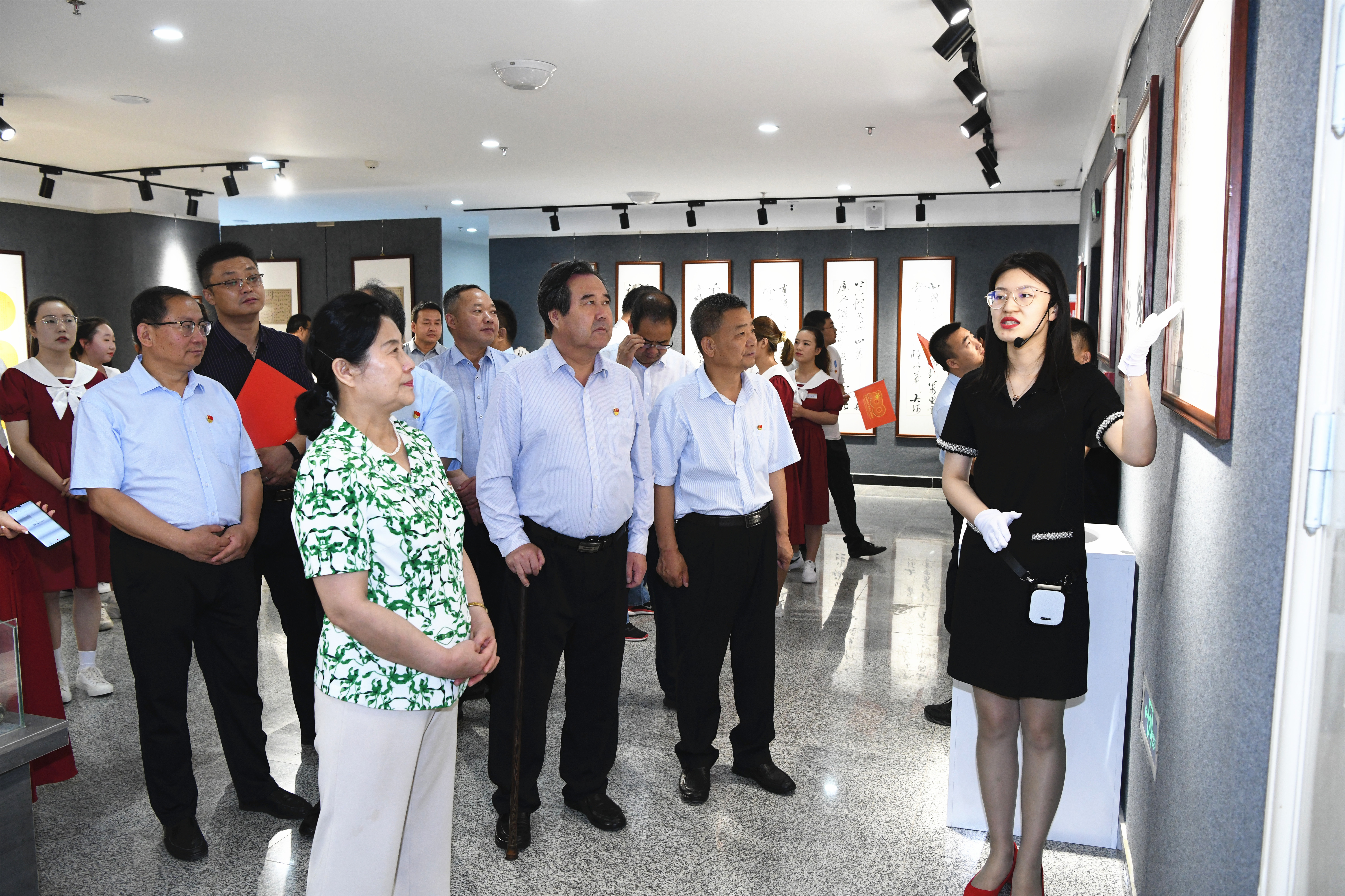 ? ? ? ? ? ? 與會(huì)領(lǐng)導(dǎo)、嘉賓與黨員、師生代表到學(xué)院紅色文化展廳進(jìn)行了參觀。