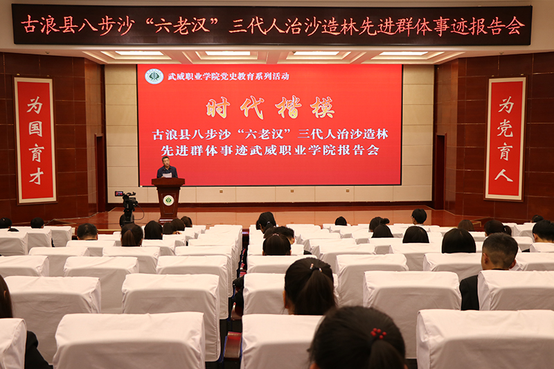 八步沙“六老漢”三代人治沙造林先進(jìn)群體事跡報告團(tuán)走進(jìn)武威職業(yè)學(xué)院