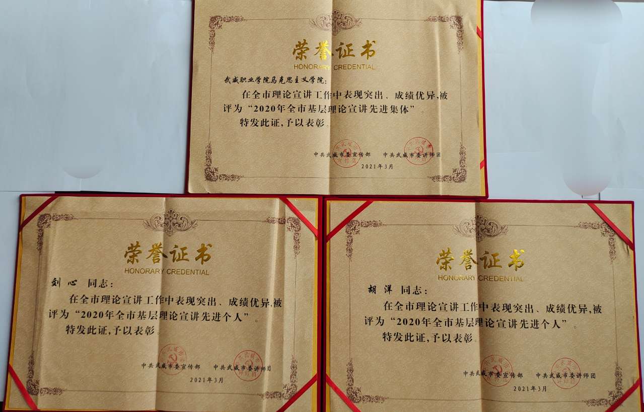 3月25日下午,武威市委宣傳部組織召開了“黨史教育專題宣講動員會暨2020年宣講工作先進(jìn)集體和個人表彰會”。武威職業(yè)學(xué)院馬克思主義學(xué)院被授予“2020年全市基層理論宣講先進(jìn)集體”榮譽稱號,同時馬克思主義學(xué)院教師、翟存祥名師工作室成員劉心、胡洋被授予“2020年全市基層理論宣講先進(jìn)個人”榮譽稱號。