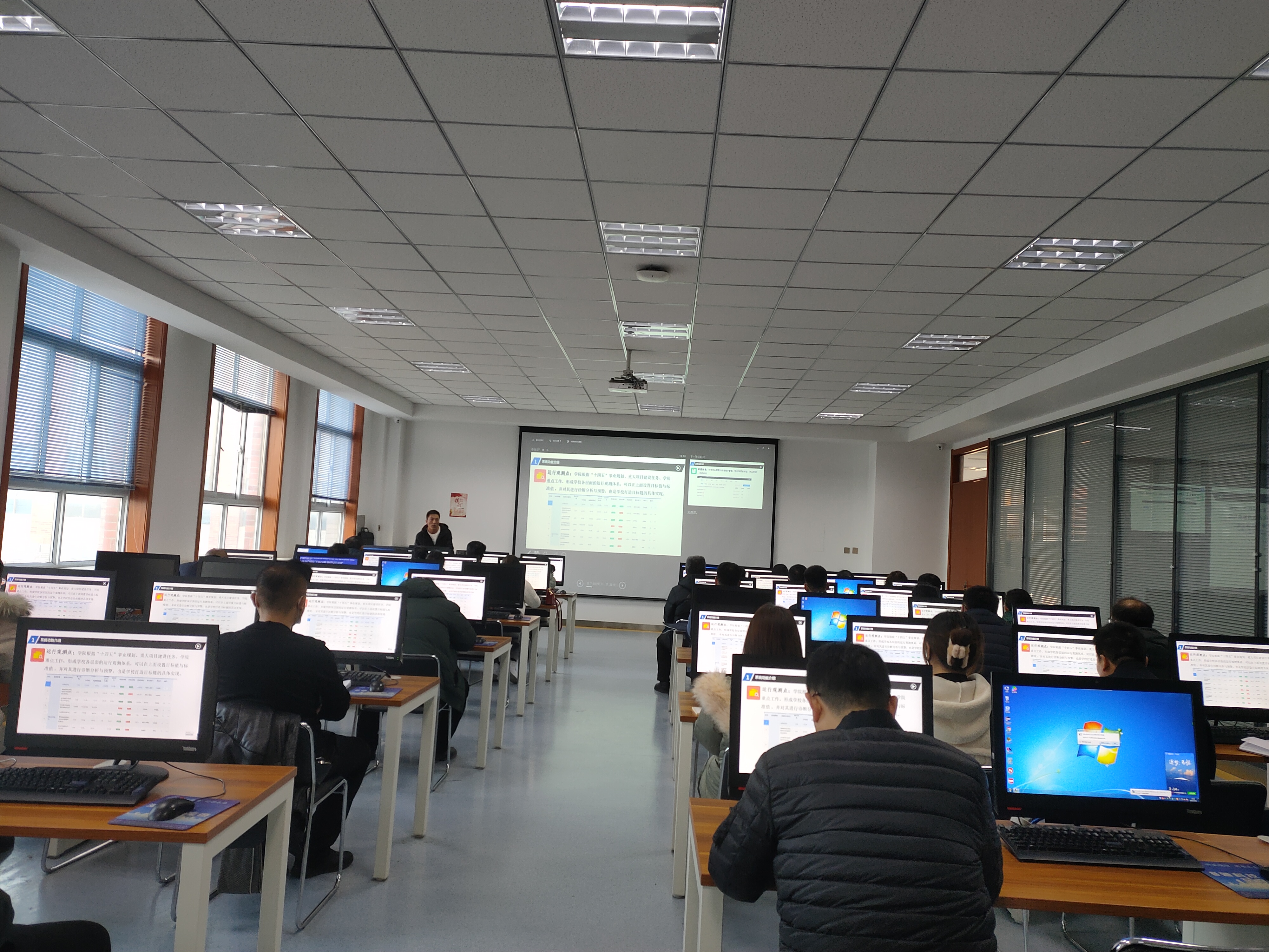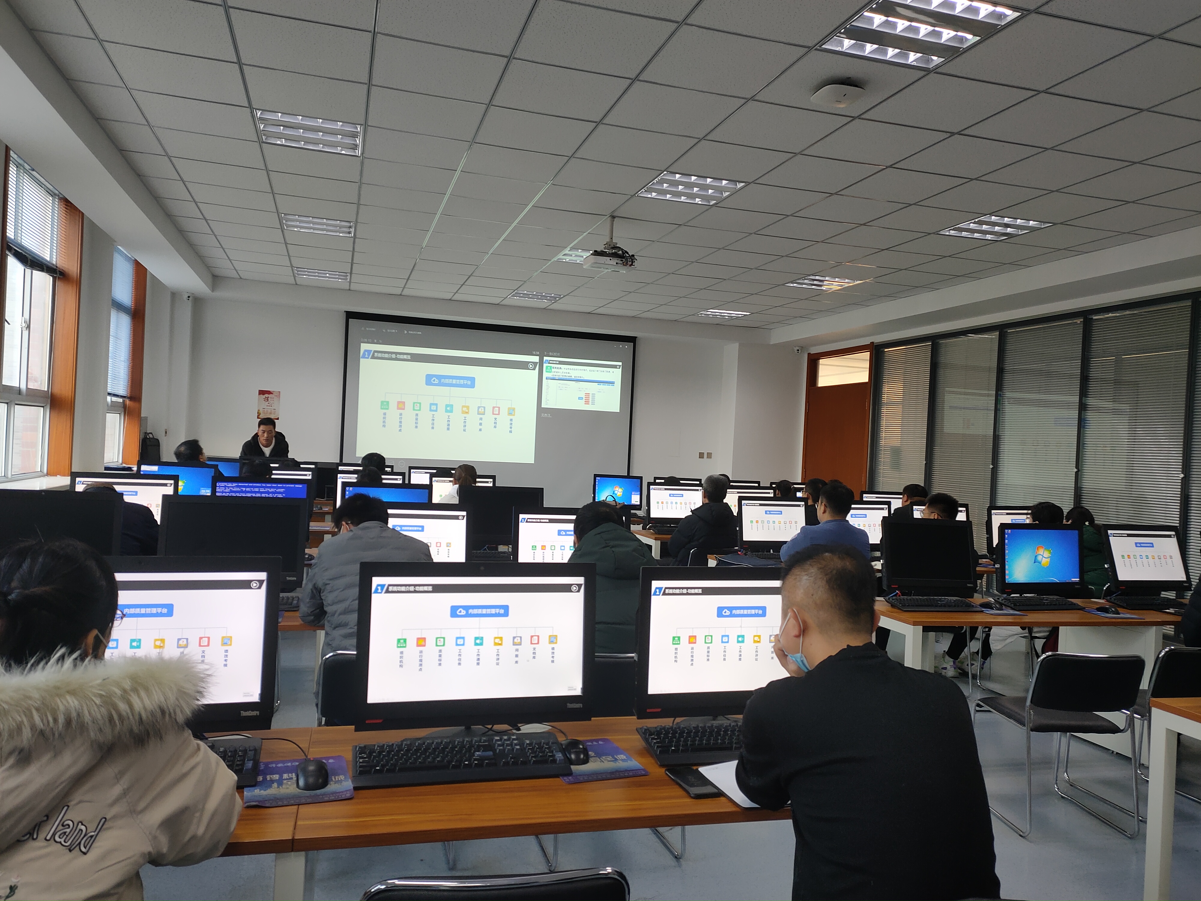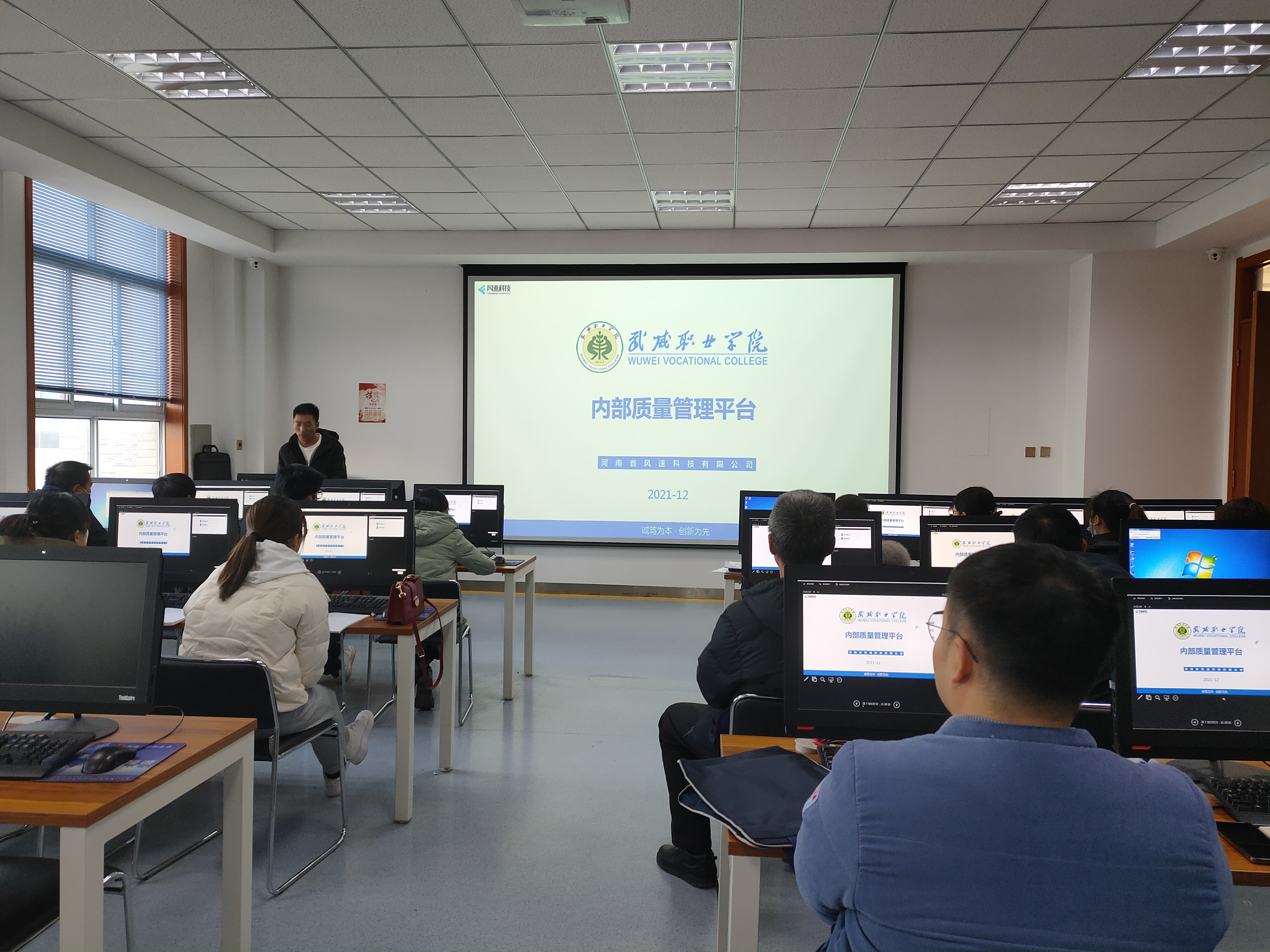 風(fēng)速科技有限公司項(xiàng)目經(jīng)理徐來(lái)彬?qū)?huì)教師進(jìn)行了培訓(xùn)。重點(diǎn)介紹了內(nèi)部質(zhì)量管理平臺(tái)整體架構(gòu)、主要功能、任務(wù)提取、上傳、轉(zhuǎn)辦,任務(wù)辦理與審核、通報(bào)、文檔庫(kù)上傳與使用、績(jī)效考核等,并進(jìn)行現(xiàn)場(chǎng)操作演示,就參會(huì)教師存在的問(wèn)題進(jìn)行了溝通交流。