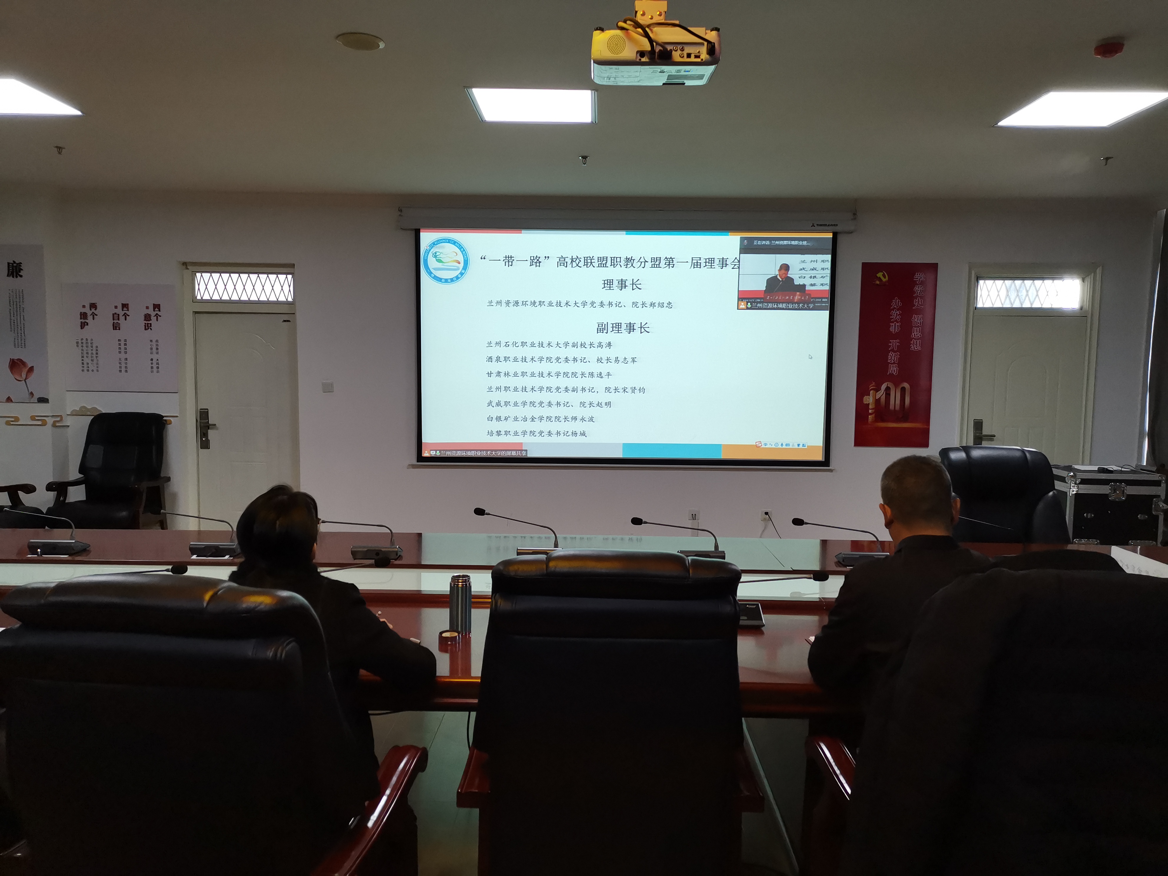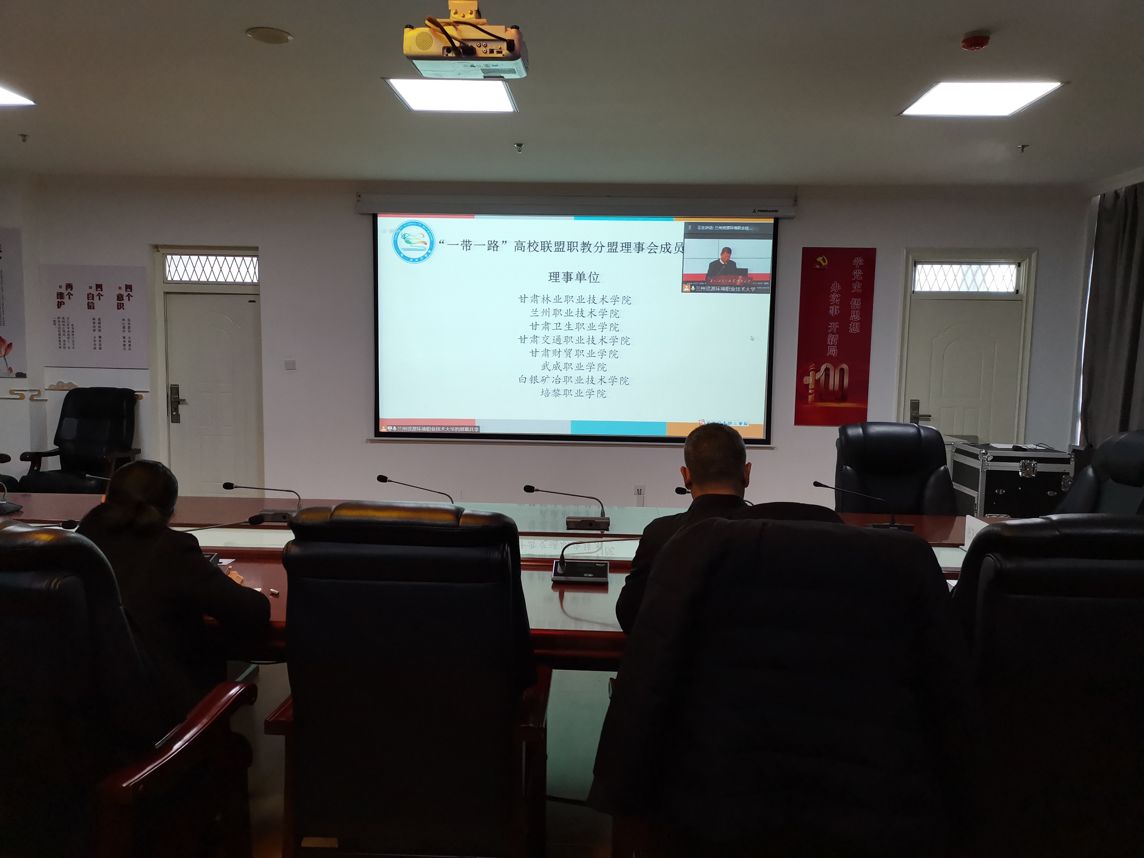 12月9日下午,“一帶一路”高校聯(lián)盟職教分盟第一屆理事會會議在蘭州資源環(huán)境職業(yè)技術(shù)大學(xué)召開,會議旨在加強“一帶一路”高校聯(lián)盟職教分盟組織建設(shè),增進(jìn)分盟成員單位之間的合作與交流,發(fā)揮理事單位在推進(jìn)“一帶一路”職業(yè)教育對外合作與交流作用。會議以蘭外線上蘭內(nèi)線下的形式召開。學(xué)院設(shè)立分會場,參加在線會議。黨委委員、副院長田迎春參加會議,國際合作與交流處處長潘從民及相關(guān)人員參加會議。