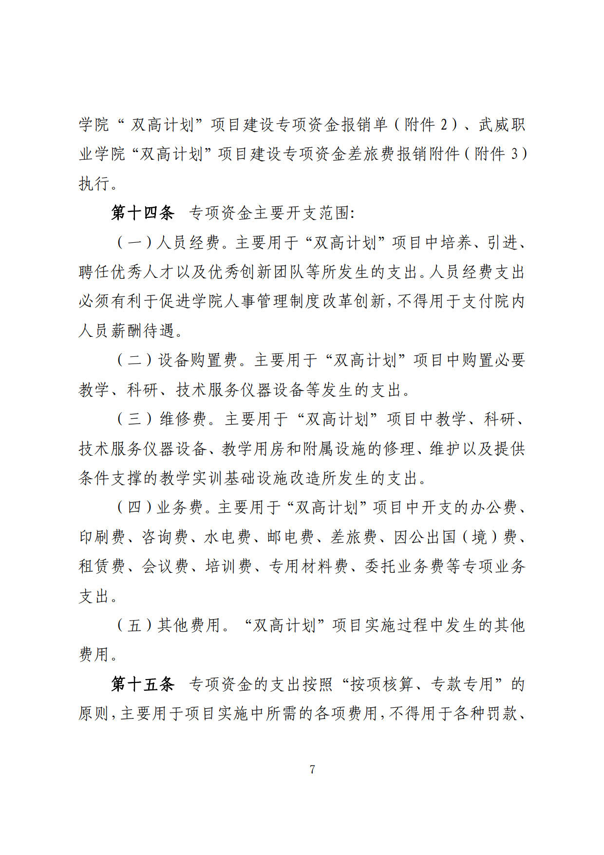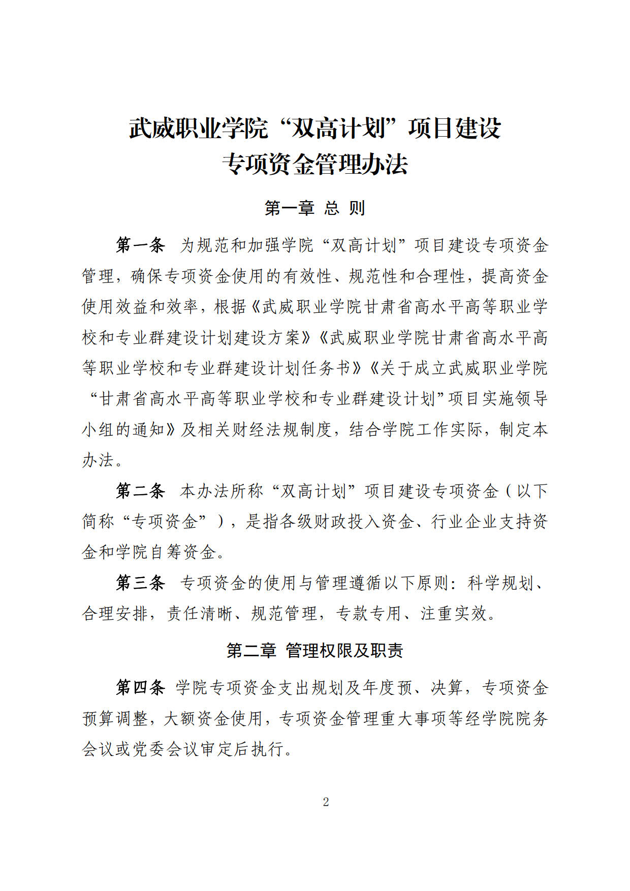 關(guān)于印發(fā)《武威職業(yè)學(xué)院“雙高計劃”項目建設(shè)專項資金管理辦法》的通知