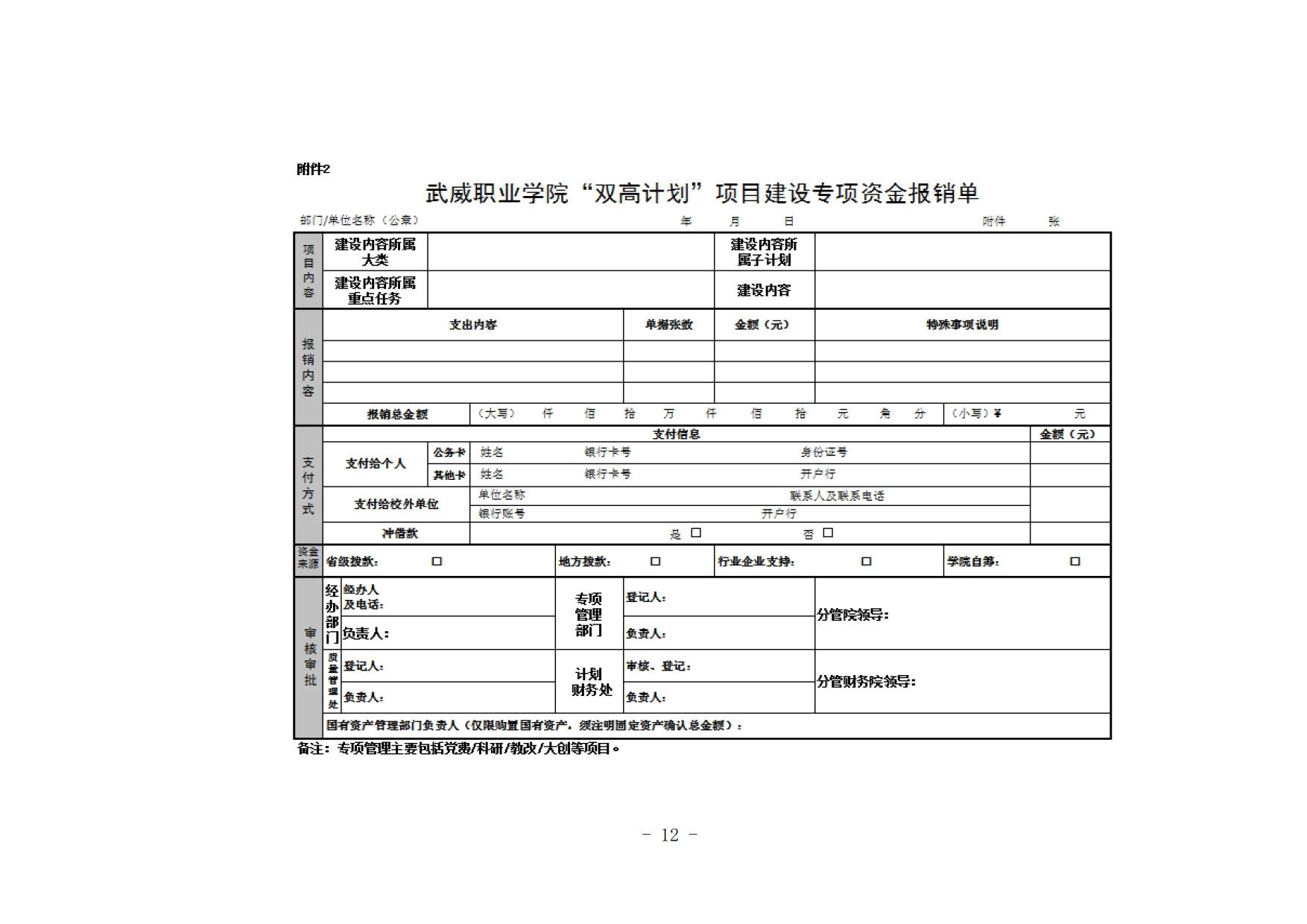 武威職業(yè)學(xué)院報銷單(非雙高建設(shè))