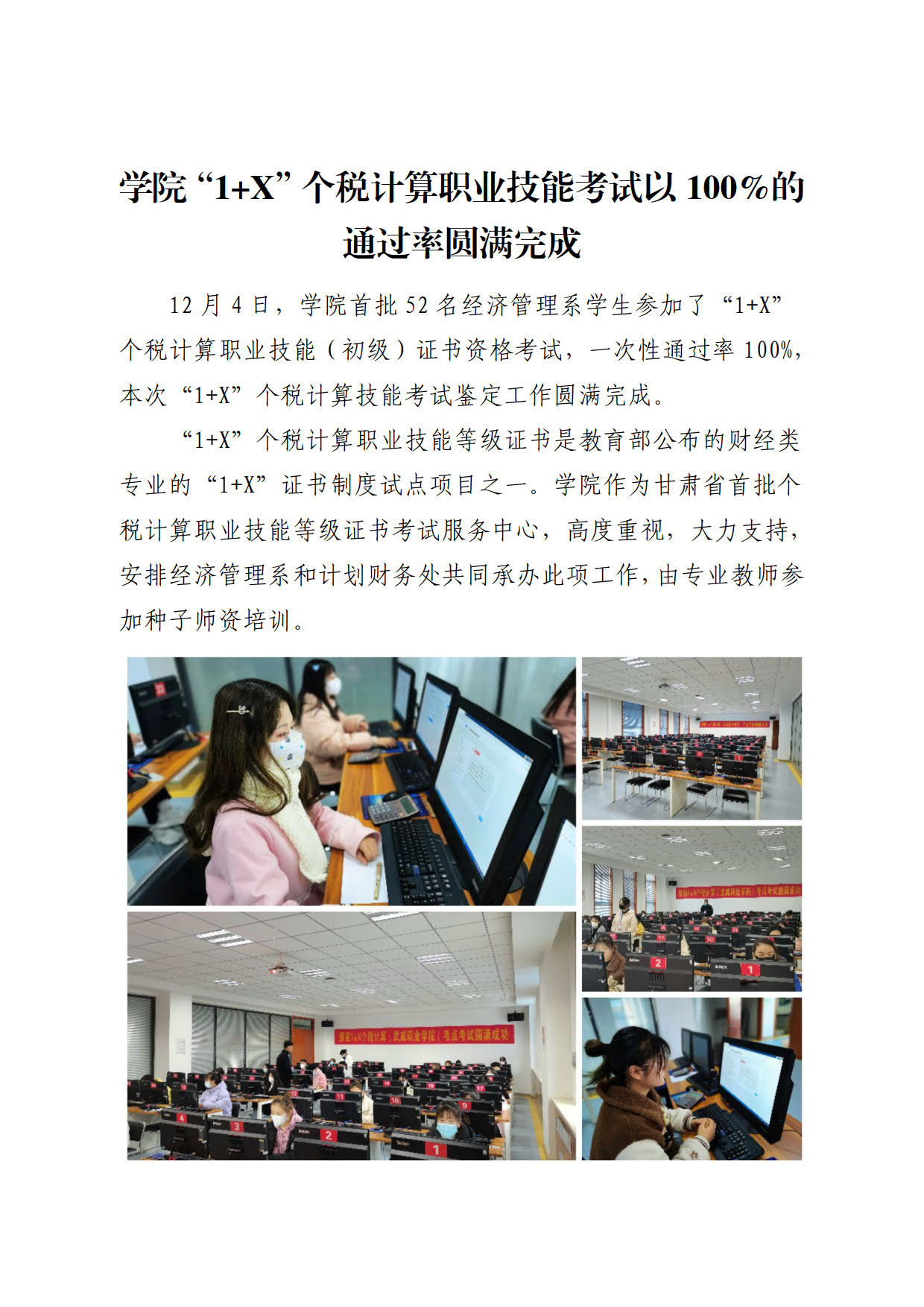 學(xué)院“1+X”個(gè)稅計(jì)算職業(yè)技能考試以100%的通過(guò)率圓滿完成