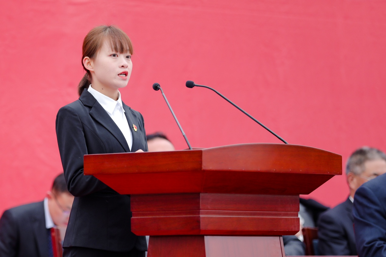 上午9時,大會在莊嚴(yán)的國歌聲中拉開序幕,二十余名學(xué)生代表致獻詞《請黨放心,強國有我》,用最飽滿的聲音,堅定地向黨道出了青春的誓言。