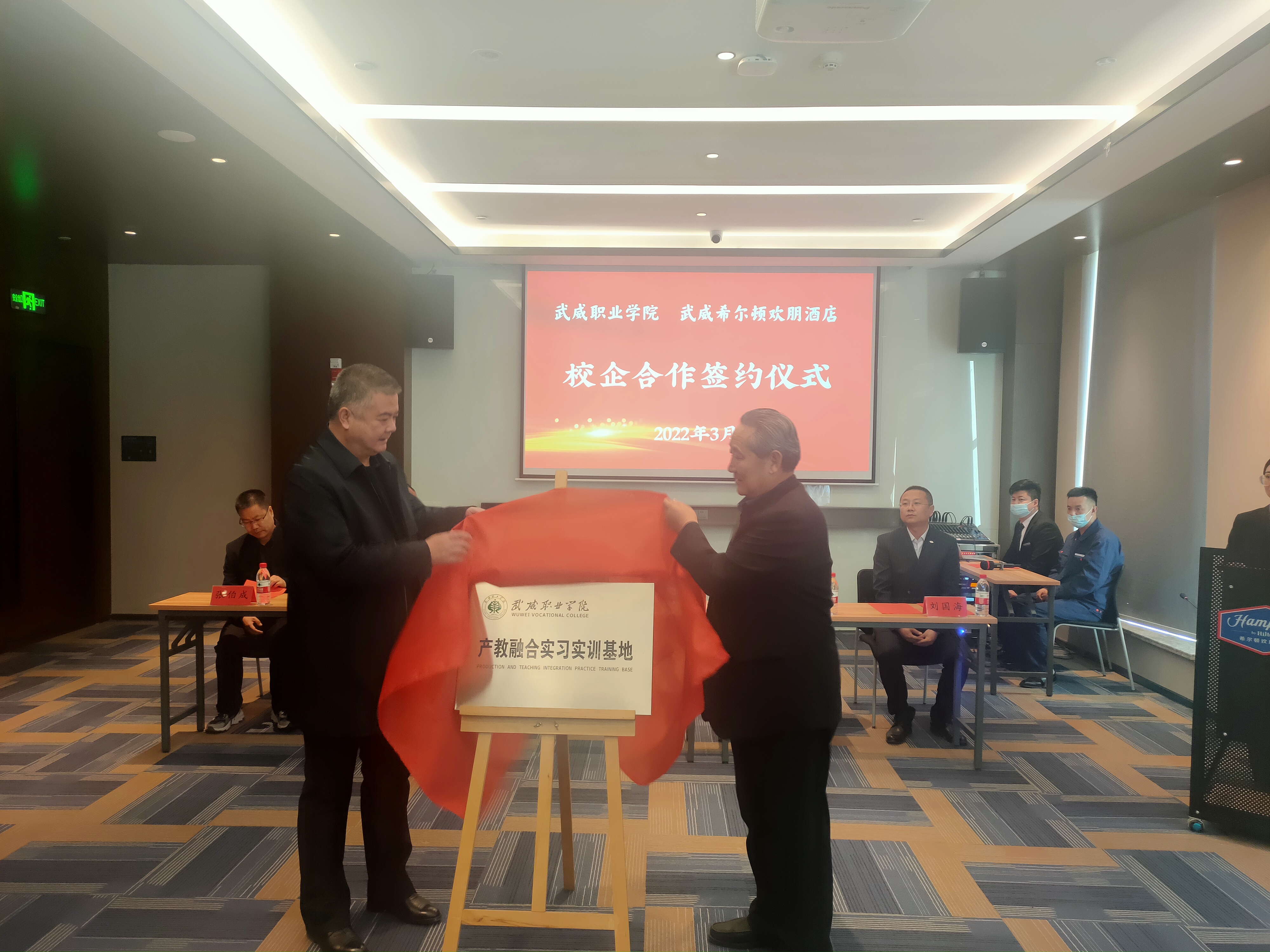 為深入貫徹落實(shí)教育部2022屆普通高校畢業(yè)生就業(yè)創(chuàng)業(yè)網(wǎng)絡(luò)視頻會(huì)議精神,統(tǒng)一思想,提高認(rèn)識,服務(wù)學(xué)院“雙高計(jì)劃”建設(shè),3月2日,學(xué)院與武威希爾頓歡朋酒店舉行校企合作揭牌暨簽約儀式,副校長王守云代表學(xué)院出席簽約儀式。