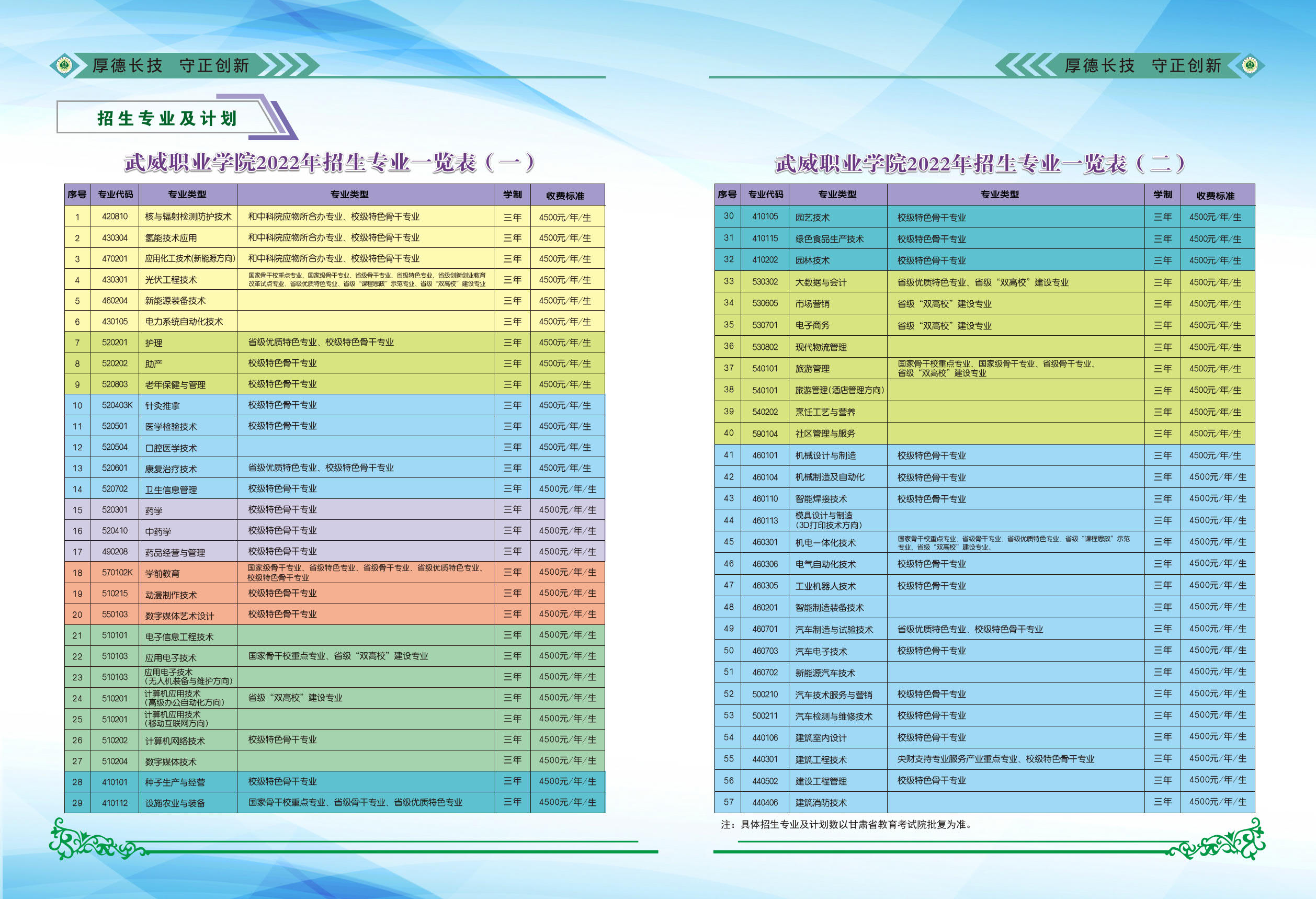 武威職業(yè)學(xué)院2022年招生簡(jiǎn)章
