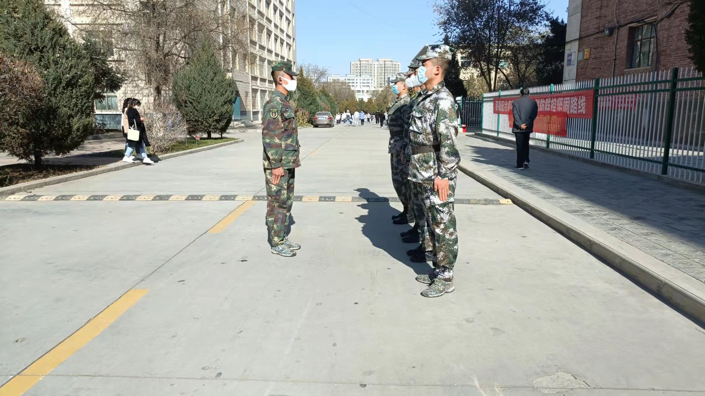 退伍不褪色,戰(zhàn)疫顯擔(dān)當(dāng)。自我省新冠肺炎疫情發(fā)生后,全院上下齊心協(xié)力共同戰(zhàn)“疫”,學(xué)院的11名退役大學(xué)生士兵也積極響應(yīng)號召,主動請戰(zhàn)投身抗疫一線,在校園維護學(xué)生健康安全崗位上堅守,不畏嚴(yán)寒,認(rèn)真負(fù)責(zé),全力守護校園平安,為打贏疫情防控阻擊戰(zhàn)貢獻自己的力量,以實際行動踐行了“抗疫有我,沖鋒在前,堅持到底,永不后退”的錚錚誓言。