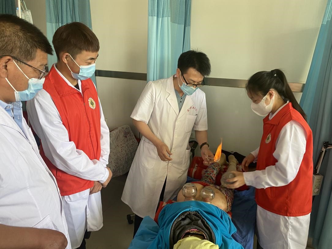 圖4- 對雙城鎮(zhèn)安全村民免費(fèi)進(jìn)行拔罐治療