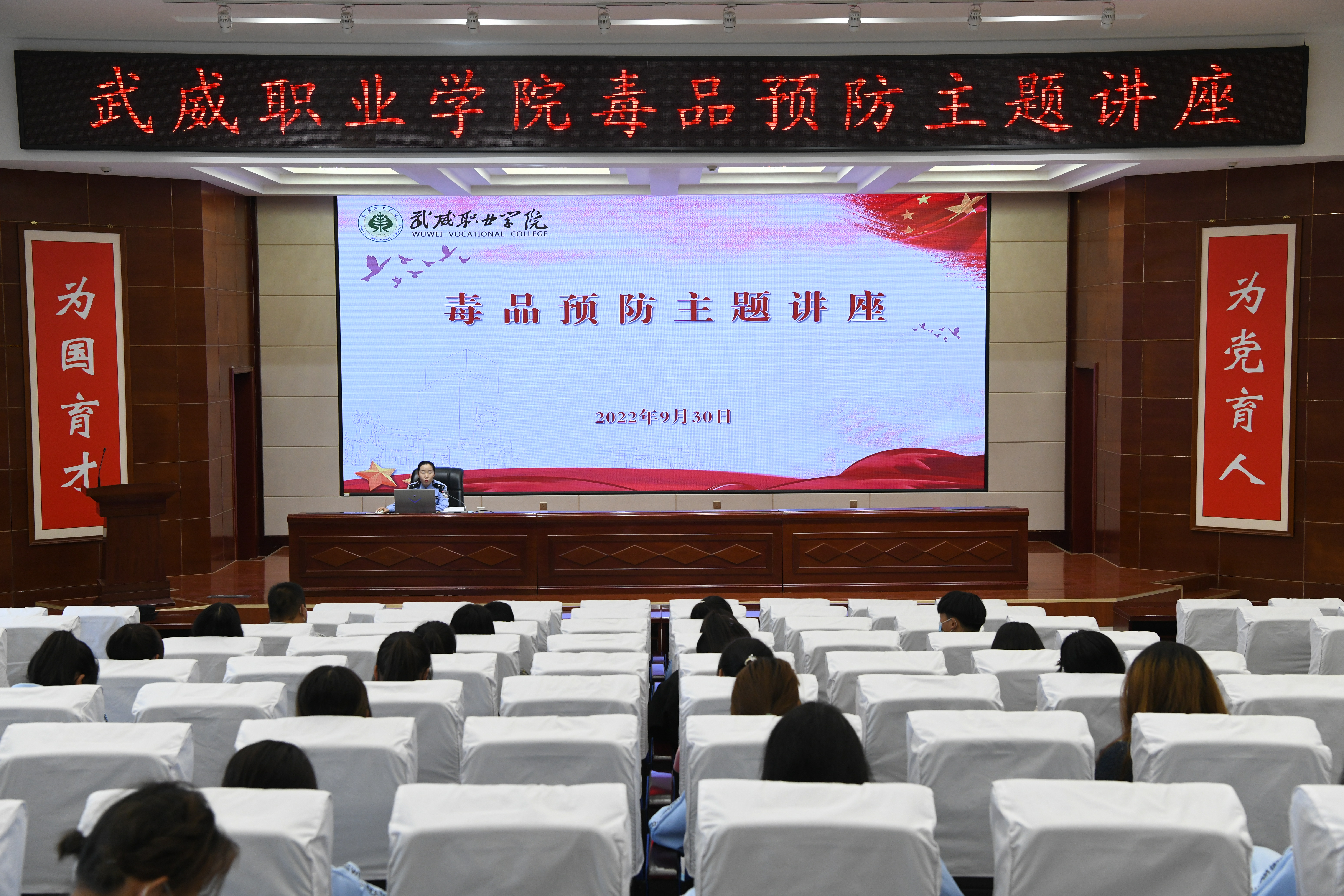 為進一步加強學(xué)校毒品預(yù)防教育工作,不斷提高師生識毒、防毒、拒毒意識,9月30日,學(xué)校安全保衛(wèi)處邀請武威市公安局涼州分局西關(guān)派出所民警王敏同志在學(xué)生發(fā)展中心菁英廳開展“健康人生 綠色無毒”預(yù)防毒品主題講座,各二級學(xué)院師生代表聆聽了講座,講座由安全保衛(wèi)處負責(zé)人李欣主持。