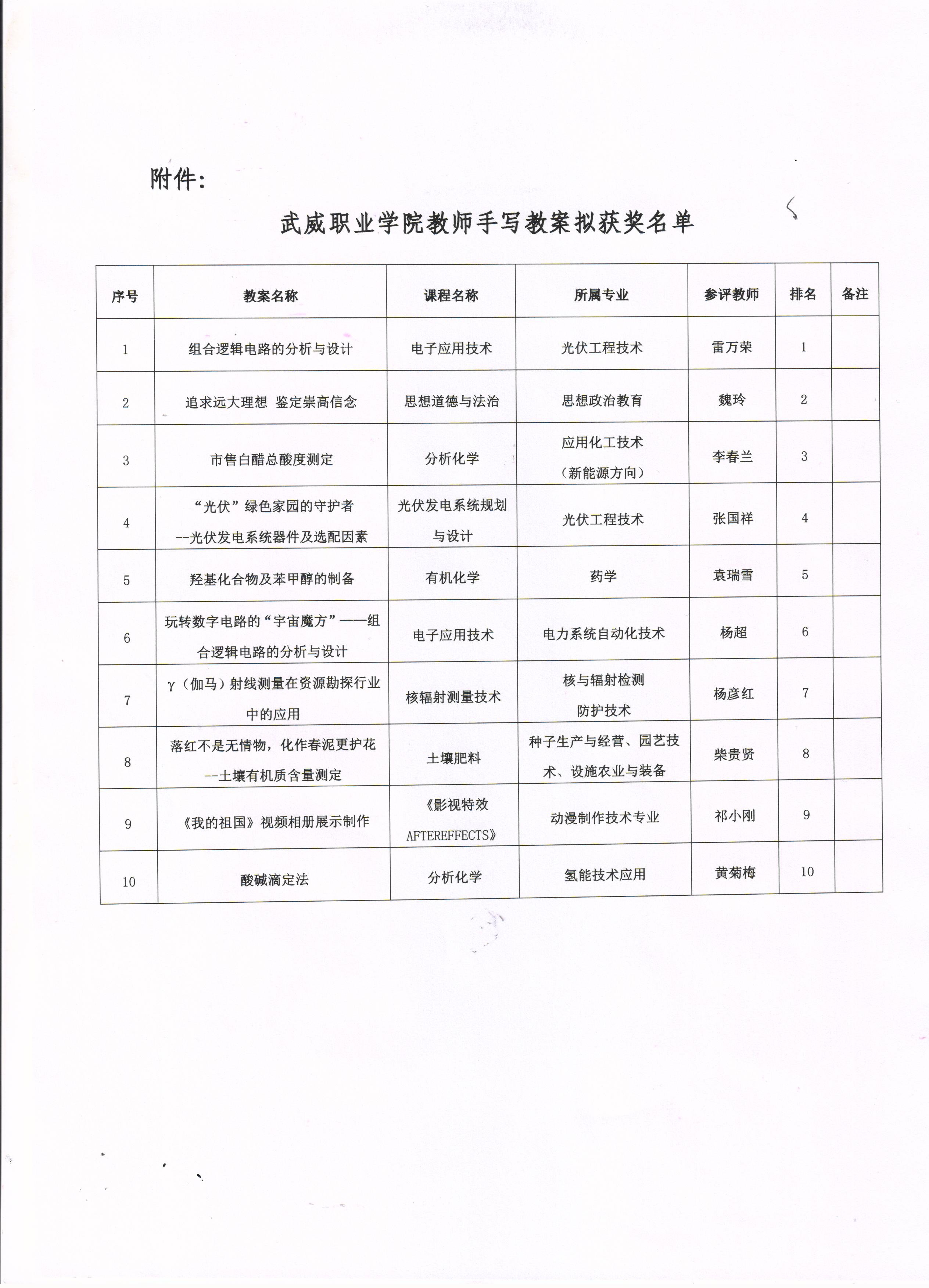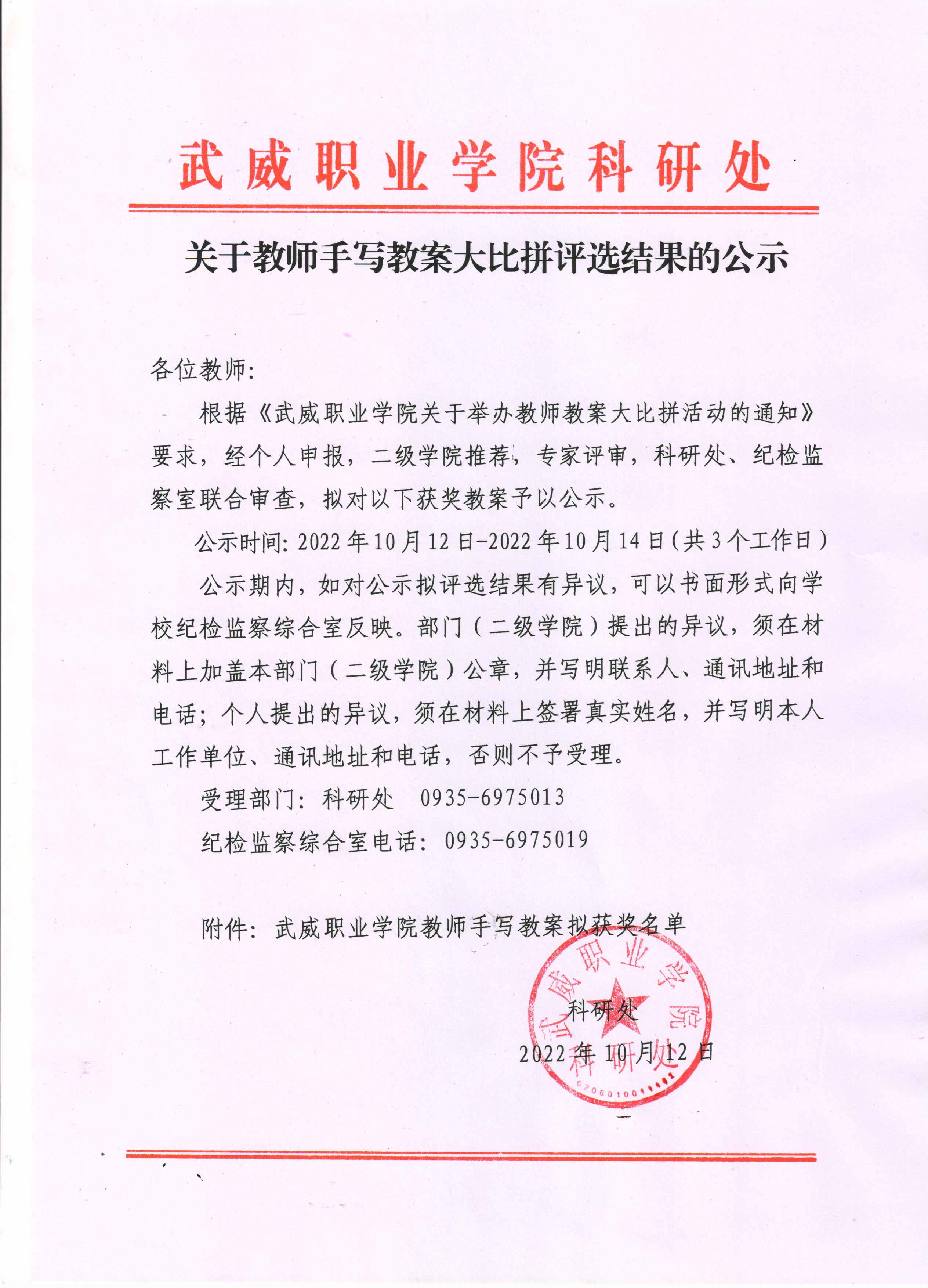 關(guān)于教師手寫教案大比拼評(píng)選結(jié)果的公示