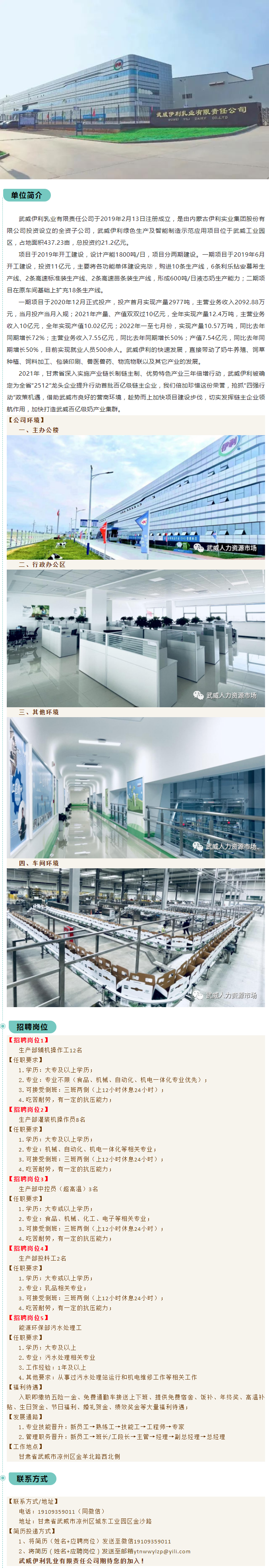校企合作單位招聘動(dòng)態(tài)——武威伊利乳業(yè)有限責(zé)任公司招聘公告