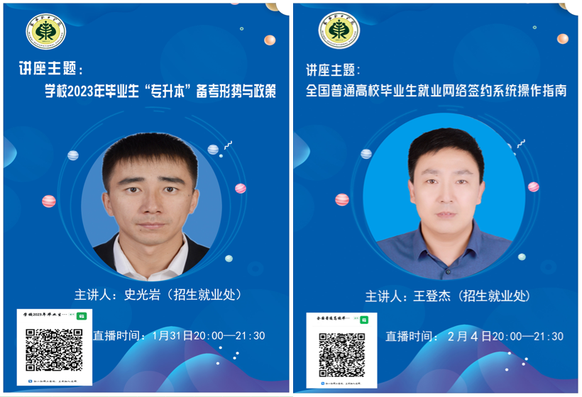 1月31日,由招生就業(yè)處老師史光巖給2023屆畢業(yè)生作線上就業(yè)指導(dǎo)講座。講座以《學(xué)校2023年畢業(yè)生“專升本”備考形勢與政策》為題,從政策文件、招生對象、招生院校及專業(yè)、報考方式、考試方式和時間節(jié)點六個方面,對專升本政策和報考注意事項進行了解讀,引導(dǎo)畢業(yè)生認(rèn)清形勢、樹立目標(biāo),鼓勵畢業(yè)生提升學(xué)歷,幫助畢業(yè)生合理規(guī)劃未來、追逐本科夢想,促進高質(zhì)量就業(yè)。同時,招生就業(yè)處也將繼續(xù)做好畢業(yè)生在報考、備考、送考等各階段的服務(wù)工作,助力畢業(yè)生實現(xiàn)升學(xué)夢。