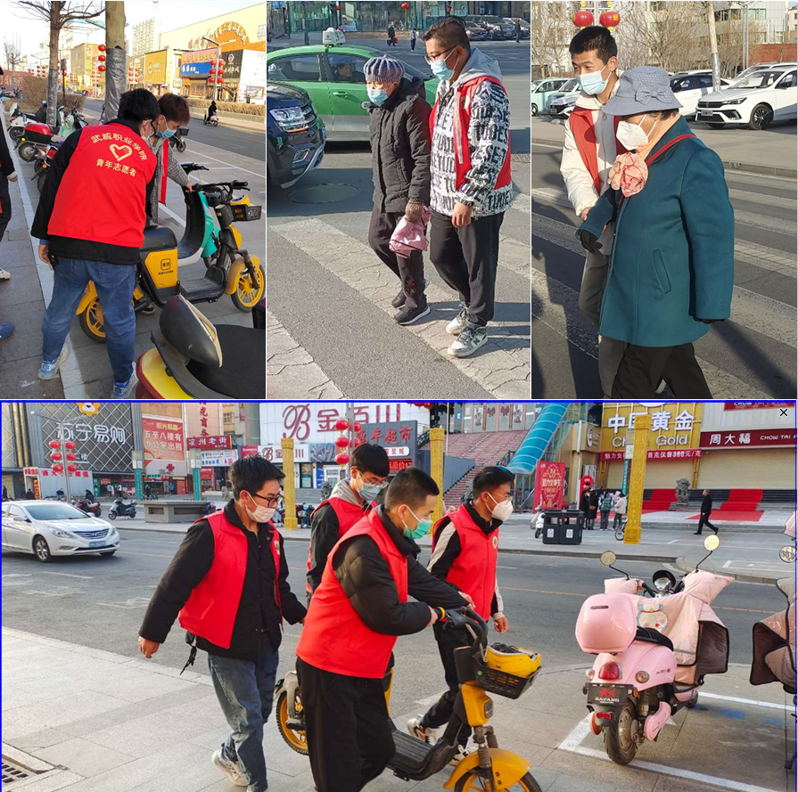 第二組志愿者在文化廣場十字路口配合交警進(jìn)行文明交通志愿服務(wù),引導(dǎo)大家維護(hù)交通秩序,文明出行。幫助行動不便的老人過馬路,整理擺放路邊共享單車,電動車。