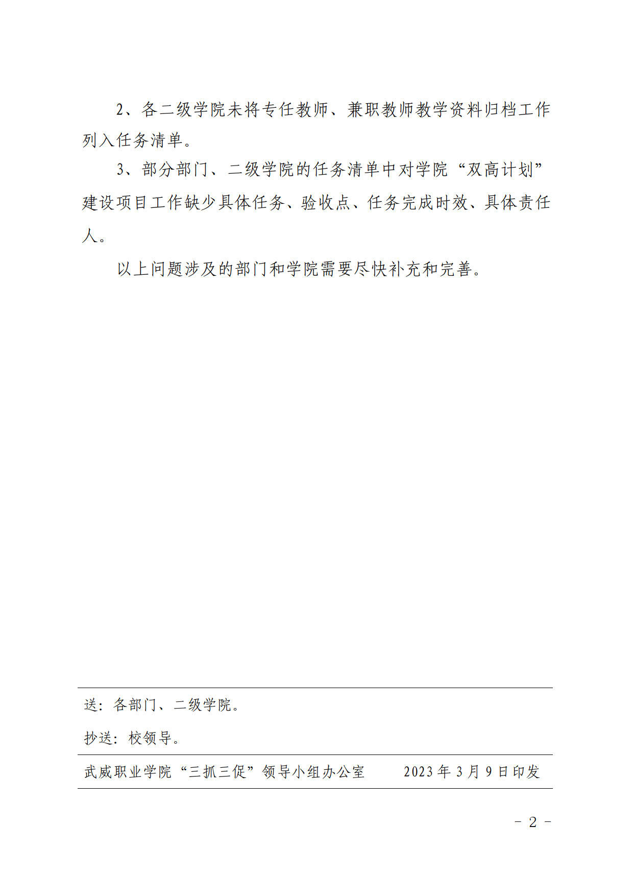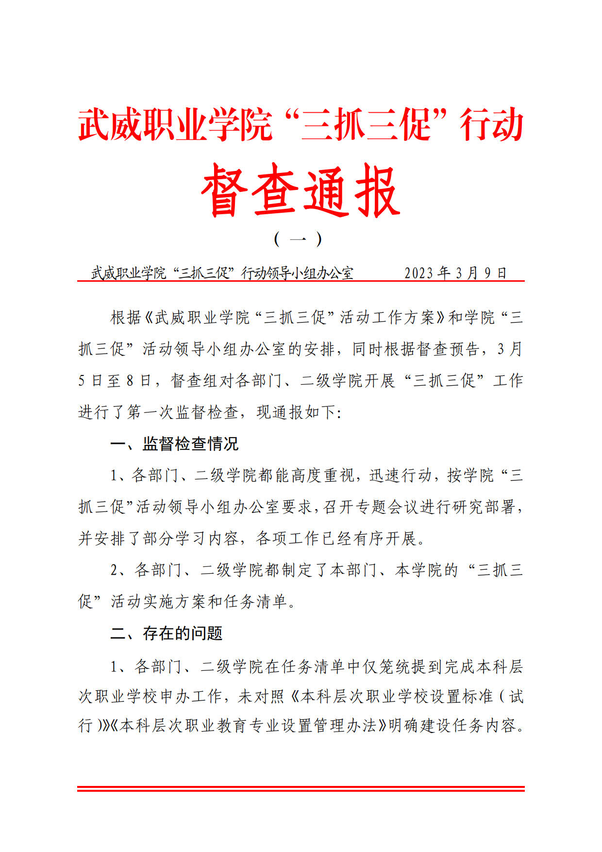 武威職業(yè)學(xué)院“三抓三促”行動(dòng)督查通報(bào)(一)