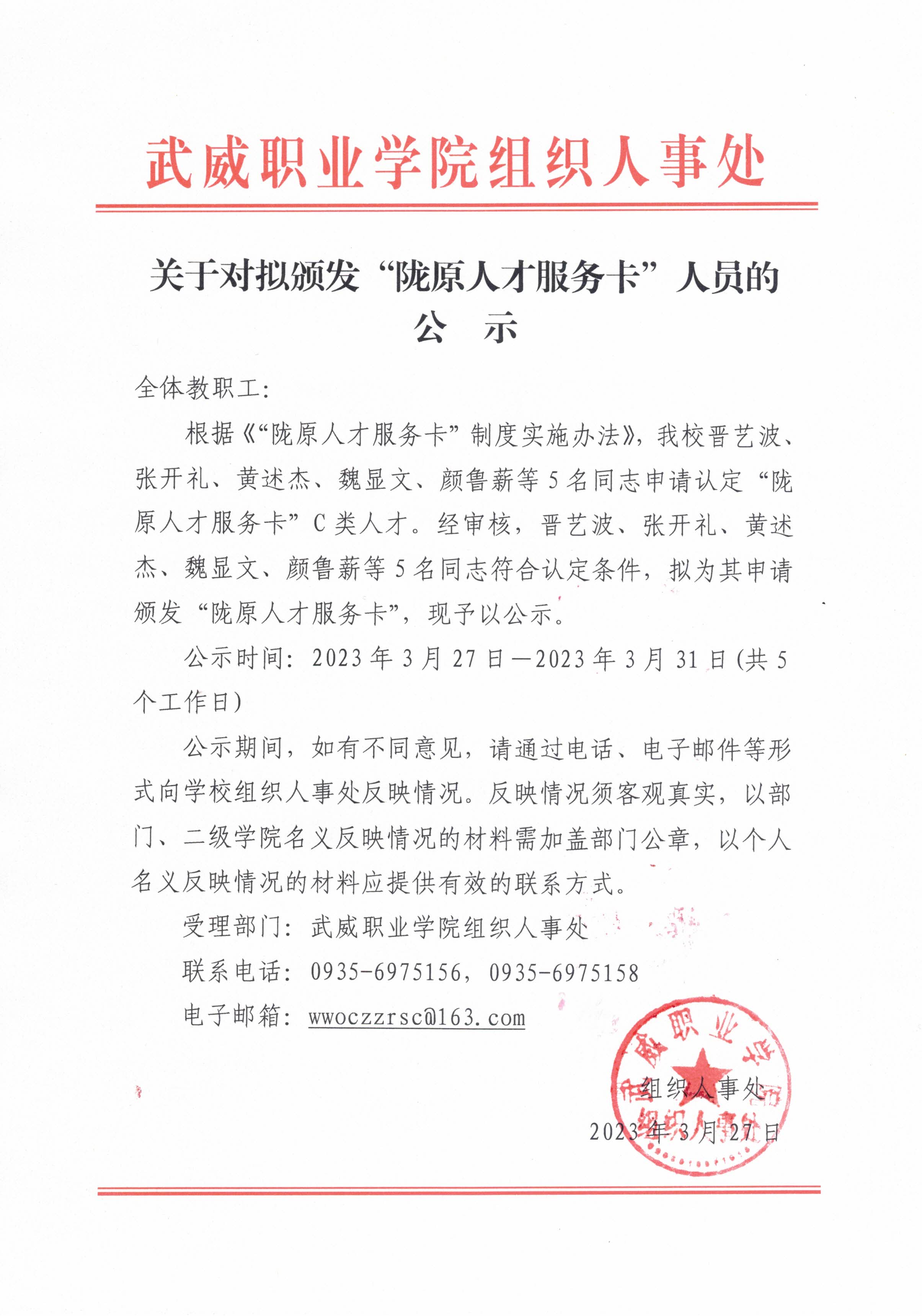 武威職業(yè)學(xué)院關(guān)于對(duì)第二批武威市領(lǐng)軍人才擬推薦…