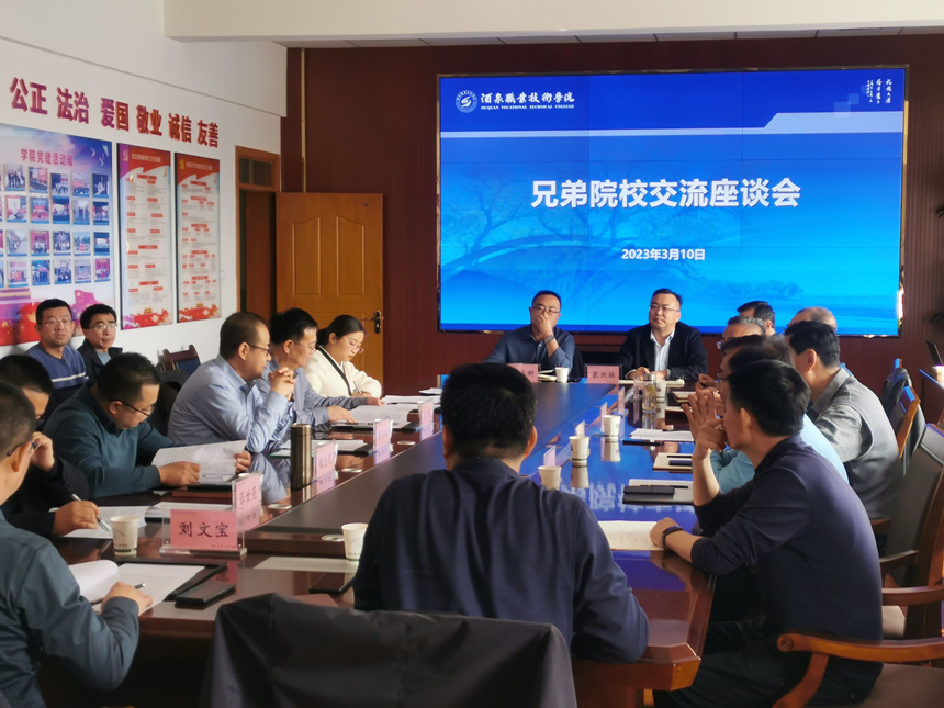 3月10日,學校黨委副書記翟存祥,黨委委員、副校長張開禮一行赴酒泉職業(yè)技術(shù)學院,就“雙高計劃”學校建設(shè)、本科層次職業(yè)學校申辦、產(chǎn)教融合、社會服務(wù)等工作進行學習交流。酒泉職業(yè)技術(shù)學院黨委副書記許軍及相關(guān)部門負責人陪同考察,并組織召開交流座談會。