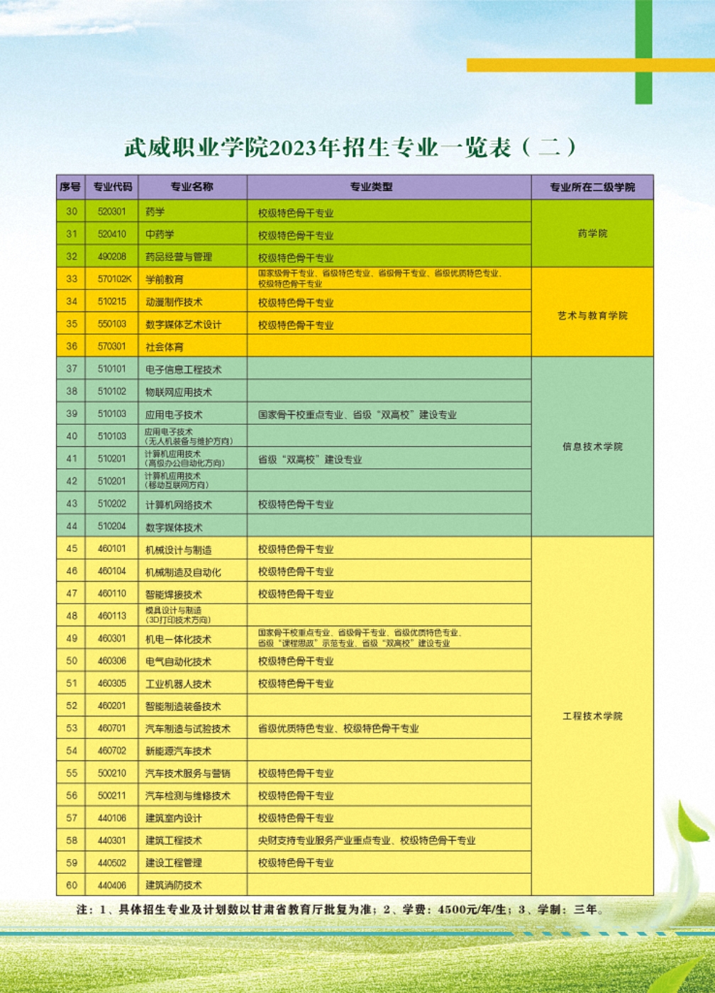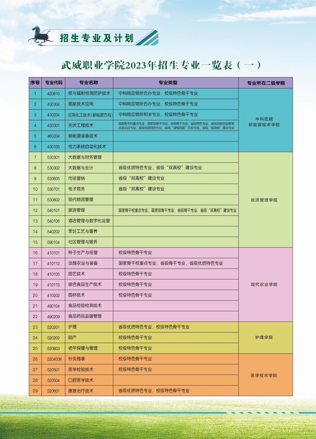 武威職業(yè)學(xué)院2023年招生簡章