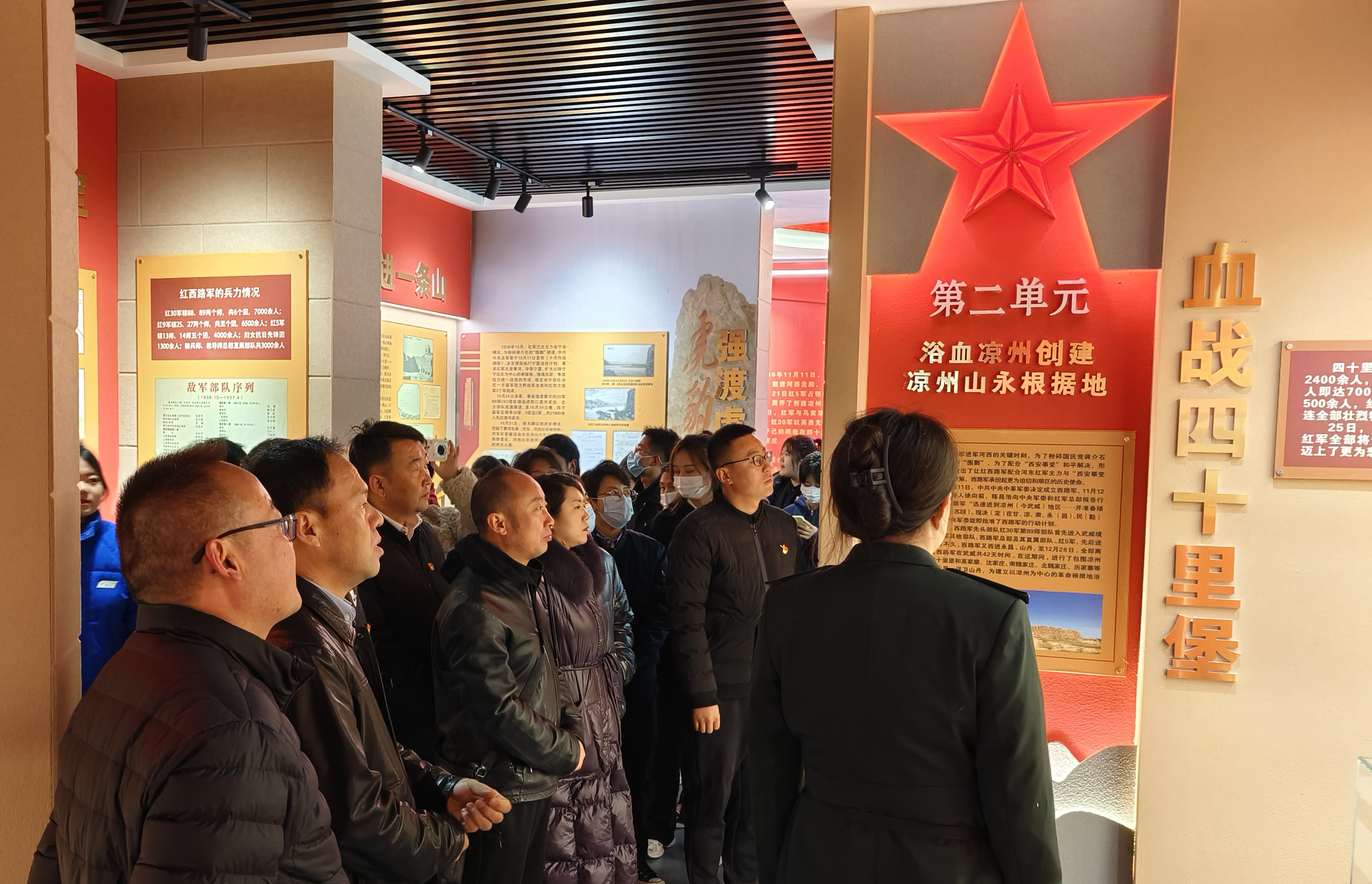 悼念儀式后,在講解員帶領(lǐng)下,大家有序參觀了紀念館,瞻仰了革命烈士生平事跡、史料和遺物,詳細了解了涼州戰(zhàn)役的歷史,莊嚴地重溫了入黨誓詞。