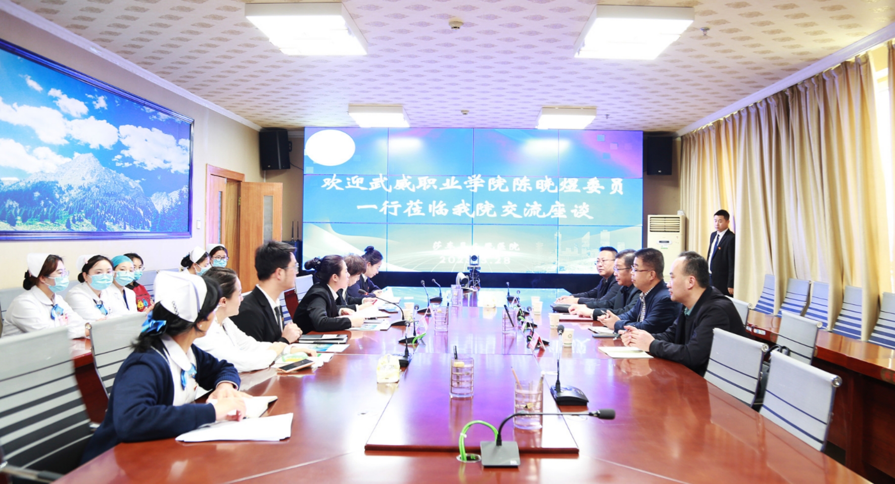 在和田地區(qū)人民醫(yī)院訪企拓崗座談會上,陳曉煜介紹了學(xué)校發(fā)展情況和本次走訪醫(yī)院的工作任務(wù),希望進(jìn)一步加強(qiáng)校院深度合作,共同優(yōu)化人才培養(yǎng)方案和課程設(shè)置,提升學(xué)校人才培養(yǎng)質(zhì)量,為邊疆衛(wèi)生事業(yè)發(fā)展提供人才支持。張建輝從學(xué)校二級學(xué)院設(shè)置、師資隊(duì)伍、教育教學(xué)、開設(shè)專業(yè)、人才培養(yǎng)、畢業(yè)生實(shí)習(xí)就業(yè)等方面做了介紹。和田地區(qū)人民醫(yī)院院長艾尼玩·阿布都熱依木介紹了醫(yī)院的基本情況及用人需求,對我校畢業(yè)生給予了高度評價(jià)。醫(yī)院現(xiàn)有我校醫(yī)藥衛(wèi)生類專業(yè)畢業(yè)生86人,其中13名護(hù)理專業(yè)畢業(yè)生擔(dān)任相關(guān)科室護(hù)士長,成為醫(yī)院護(hù)理崗位中堅(jiān)力量,他希望學(xué)校培養(yǎng)更多優(yōu)秀畢業(yè)生到醫(yī)院實(shí)習(xí)就業(yè)。