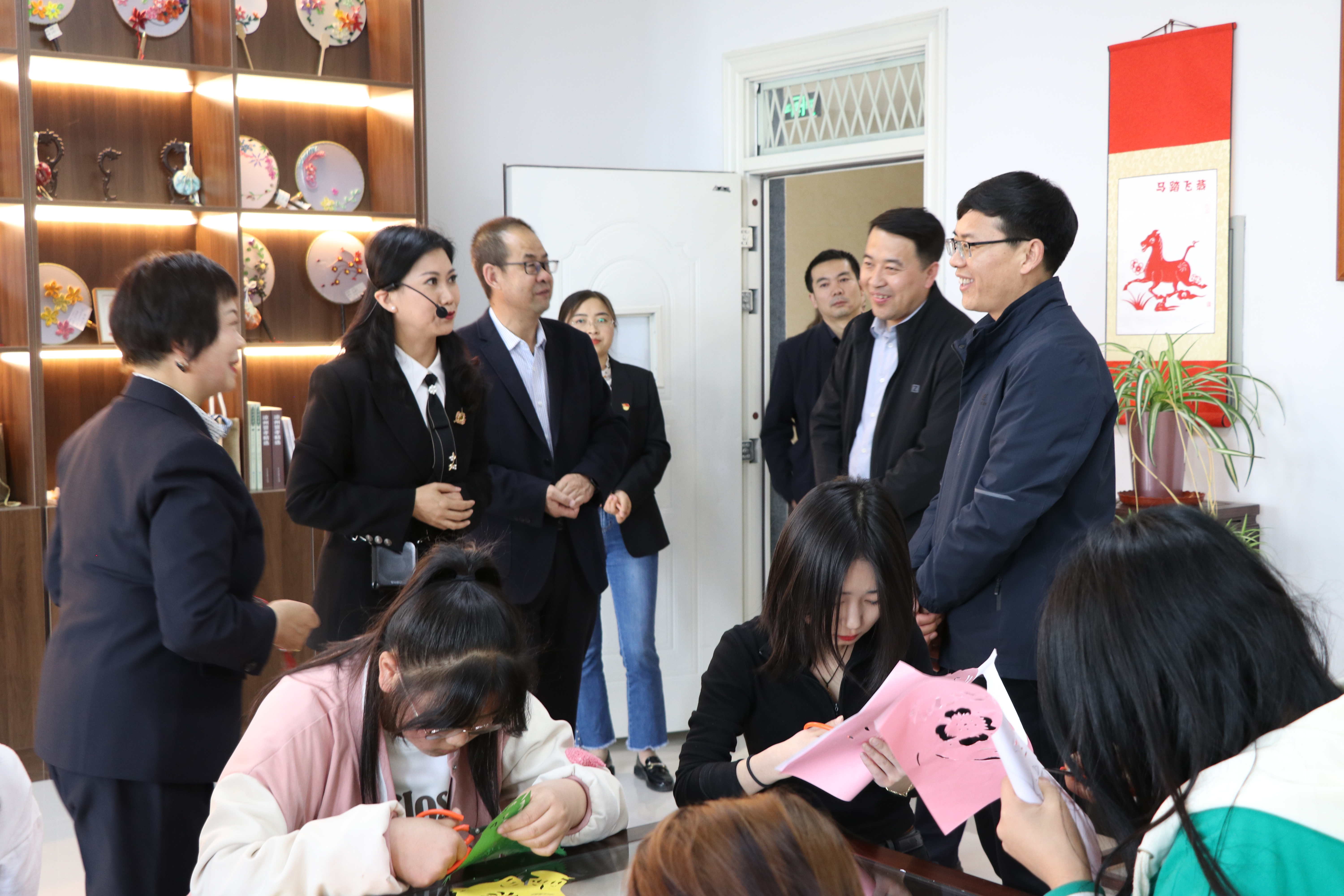 焦鵬寧一行先后深入學(xué)前教育專業(yè)實(shí)訓(xùn)室、馬克思主義學(xué)院、體育場、紅色文化藝術(shù)館、翟存祥思政課名師工作室、傳統(tǒng)文化體驗(yàn)中心、非遺文化體驗(yàn)中心、中科低碳新能源技術(shù)學(xué)院實(shí)訓(xùn)室等地實(shí)地調(diào)研參觀。翟存祥向焦鵬寧詳細(xì)介紹了學(xué)校近年來建設(shè)發(fā)展情況,重點(diǎn)對宣傳思想、馬克思主義學(xué)院建設(shè)、思想政治理論課教學(xué)、師資隊(duì)伍建設(shè)、課程思政改革及思政課名師工作室建設(shè)等情況進(jìn)行了匯報(bào)。