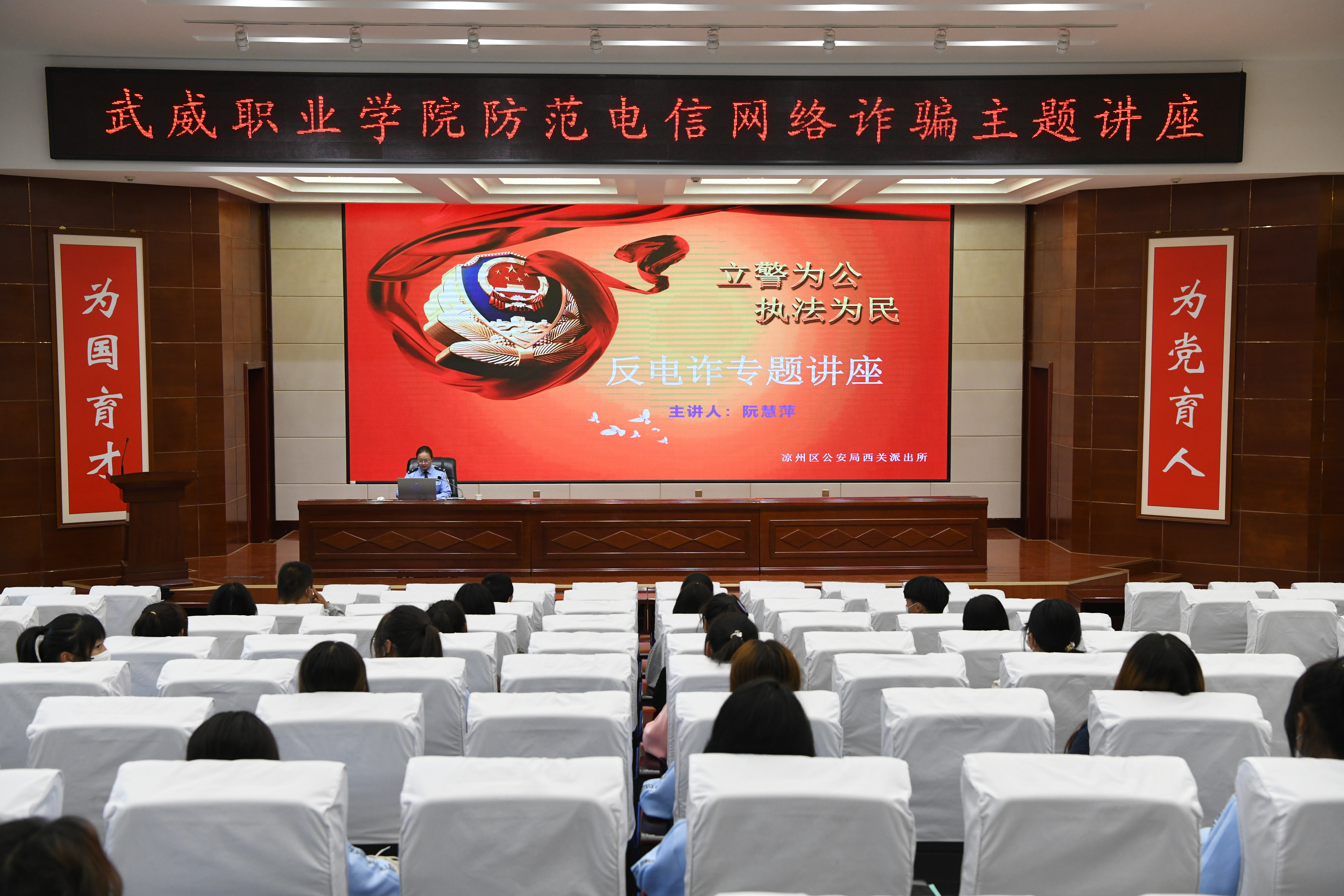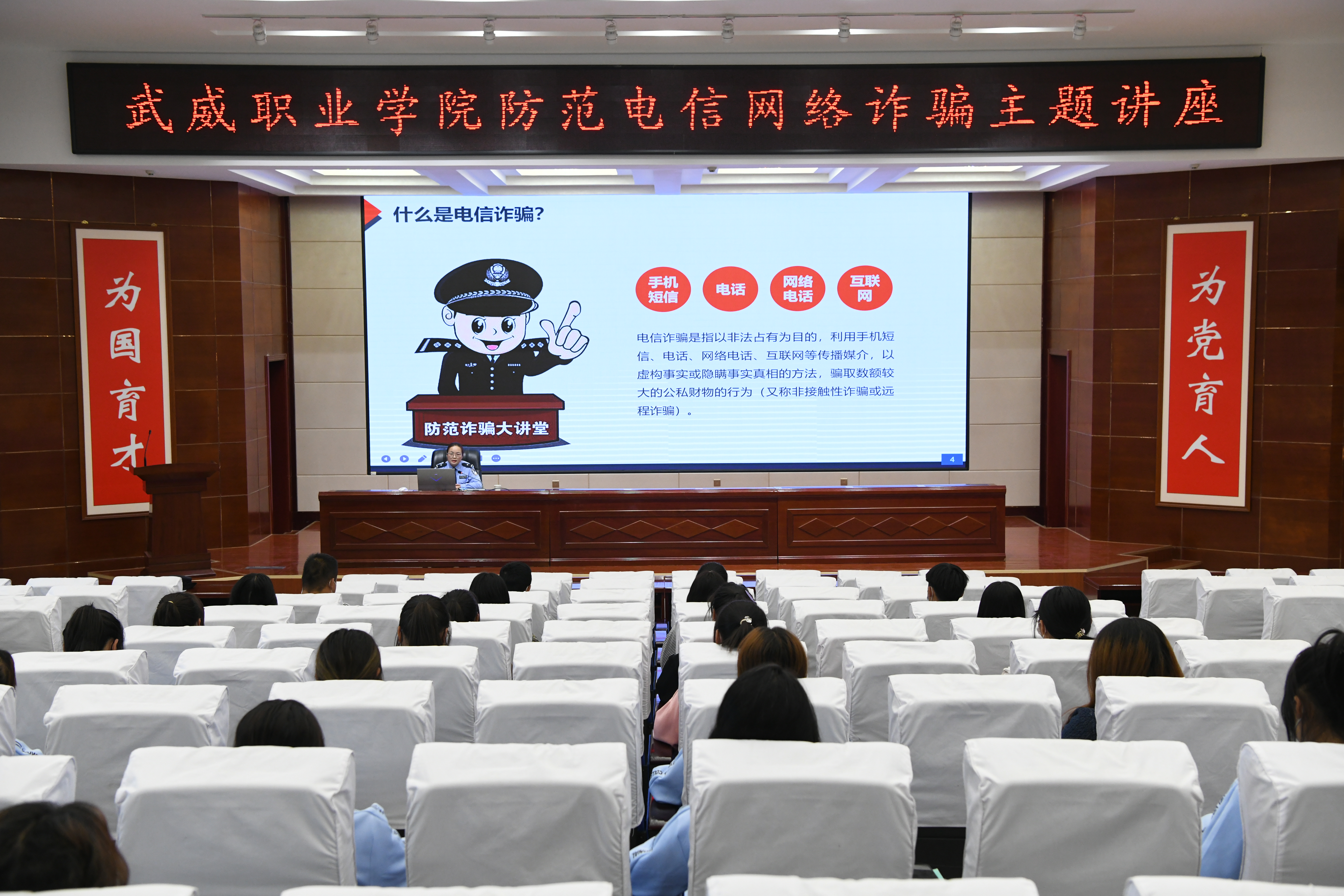 為了提高學校師生識別和防范電信網(wǎng)絡(luò)詐騙的能力,切實做好防范電信網(wǎng)絡(luò)詐騙宣傳教育工作。9月30日,學校聯(lián)合武威市公安局涼州分局西關(guān)派出所在學生發(fā)展中心菁英廳舉辦防范電信網(wǎng)絡(luò)詐騙專題講座。各二級學院師生代表聆聽了講座,講座由安全保衛(wèi)處負責人李欣主持。