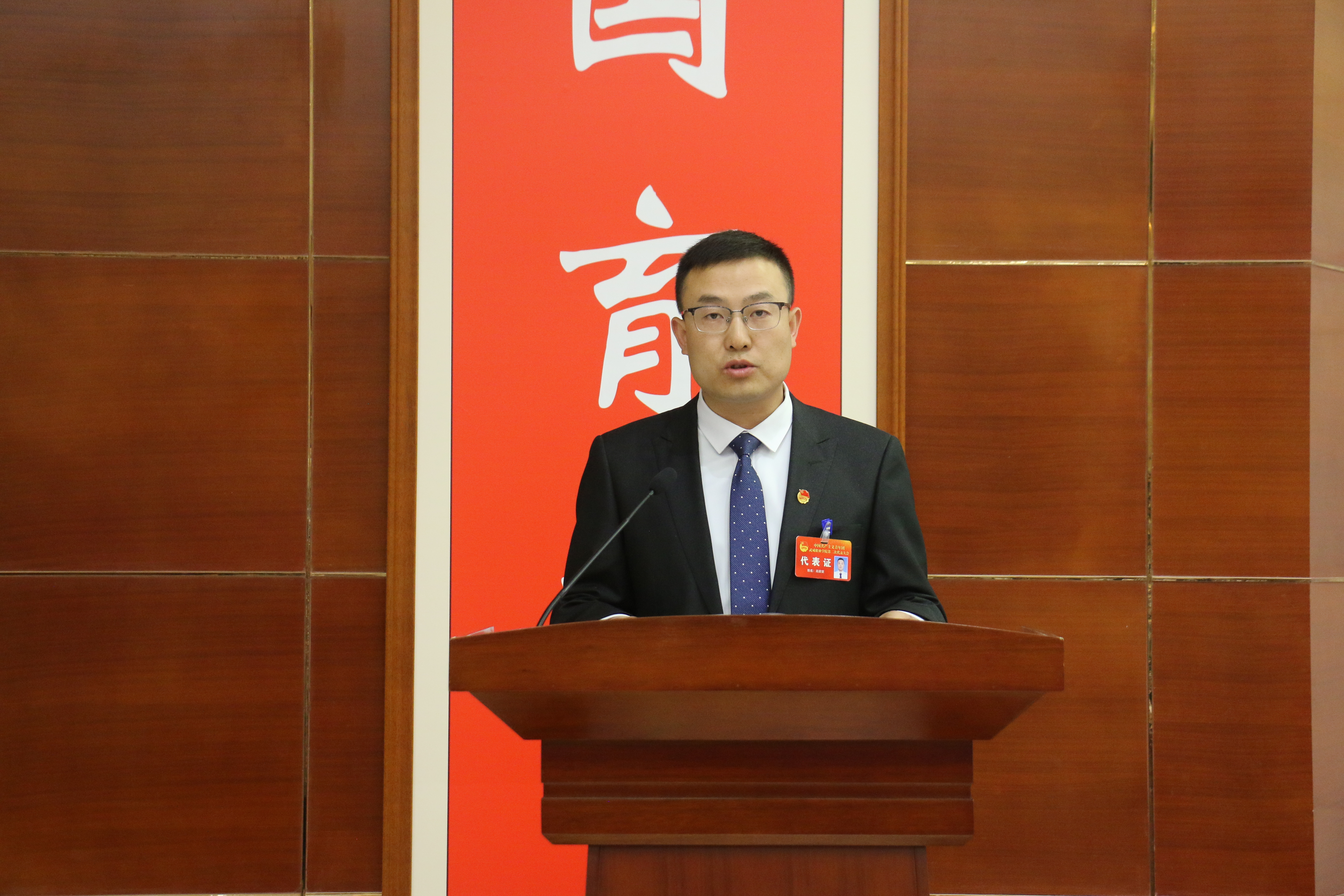 校團(tuán)委負(fù)責(zé)人高鵬堂代表共青團(tuán)武威職業(yè)學(xué)院第一屆委員會(huì)作了題為《高舉團(tuán)旗跟黨走 砥礪奮進(jìn)建新功 奮力書寫加快推進(jìn)學(xué)校高質(zhì)量發(fā)展的青春答卷》的工作報(bào)告。