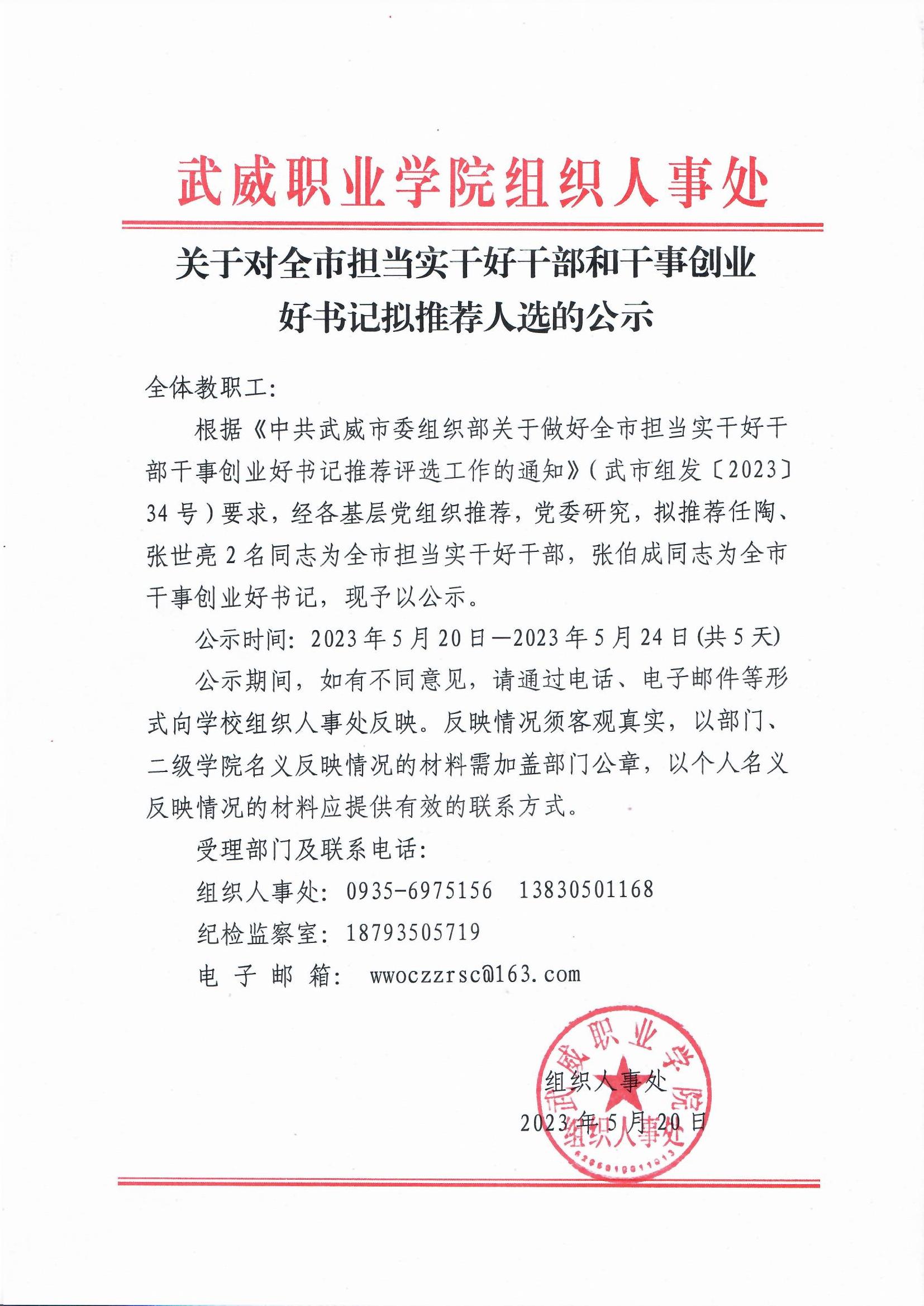 武威職業(yè)學(xué)院關(guān)于對(duì)第二批武威市領(lǐng)軍人才擬推薦…