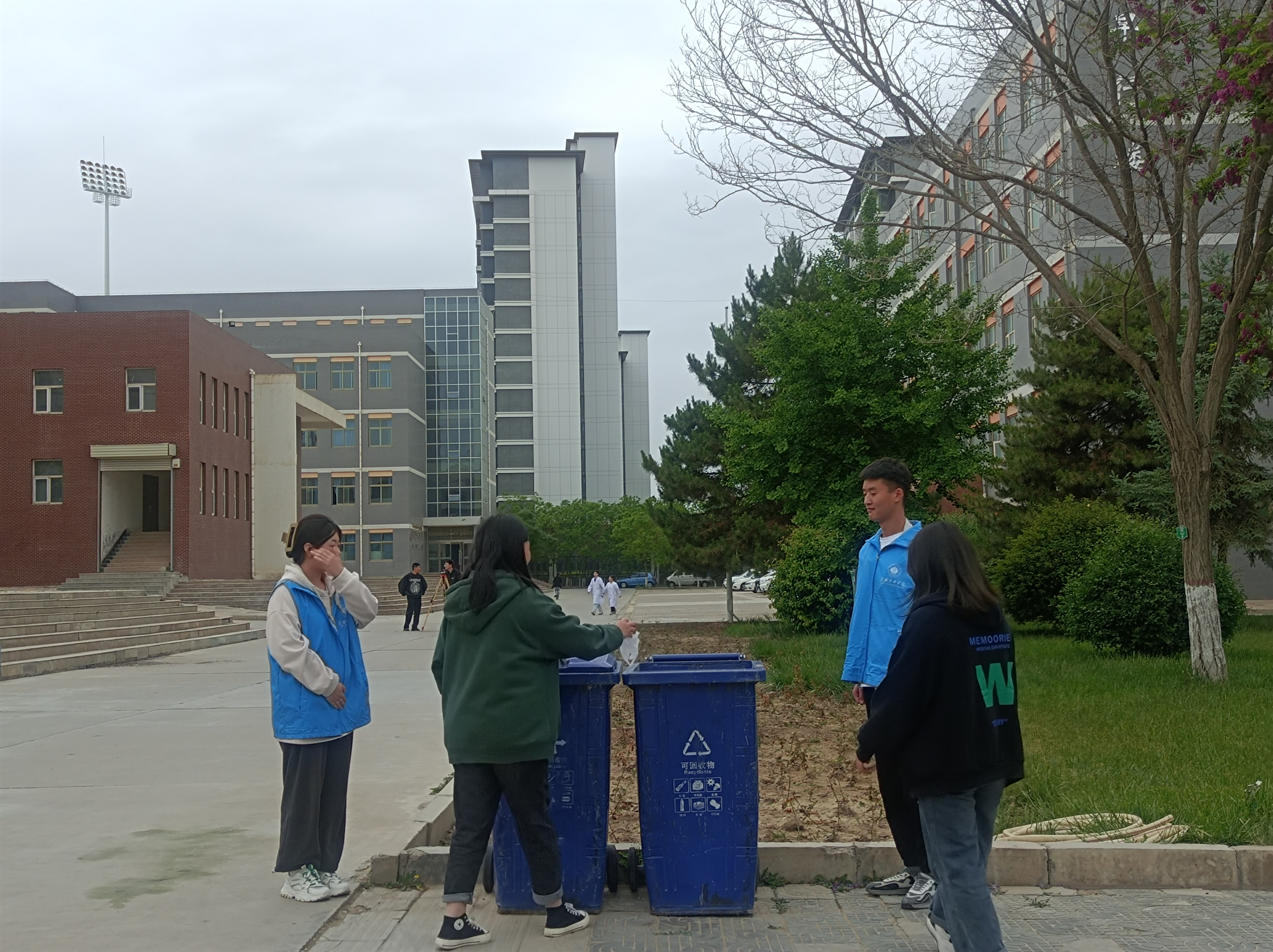 ? ? ? 志愿者們 積極參與生活垃圾分類宣傳,傳播“生態(tài)文明,從我做起"的生活理念,主動(dòng)做垃圾分類知識(shí)的宣傳者、文明生活理念的倡導(dǎo)者、垃圾分類收集的志愿者,以實(shí)際行動(dòng)帶動(dòng)身邊人參與生活垃圾分類和勞動(dòng)實(shí)踐中來(lái)。積極參加學(xué)校垃圾分類工作,從自身做起、從現(xiàn)在做起,正確分類垃圾,主動(dòng)糾正錯(cuò)誤的垃圾分類習(xí)慣,自覺(jué)將學(xué)習(xí)、工作、生活過(guò)程中產(chǎn)生的垃圾進(jìn)行分類收集和投放,不隨意丟棄。志愿者積極的奔走在校園每一個(gè)角落,引導(dǎo)同學(xué)們做好垃圾分類,為同學(xué)們樹立起垃圾分類的意識(shí)。