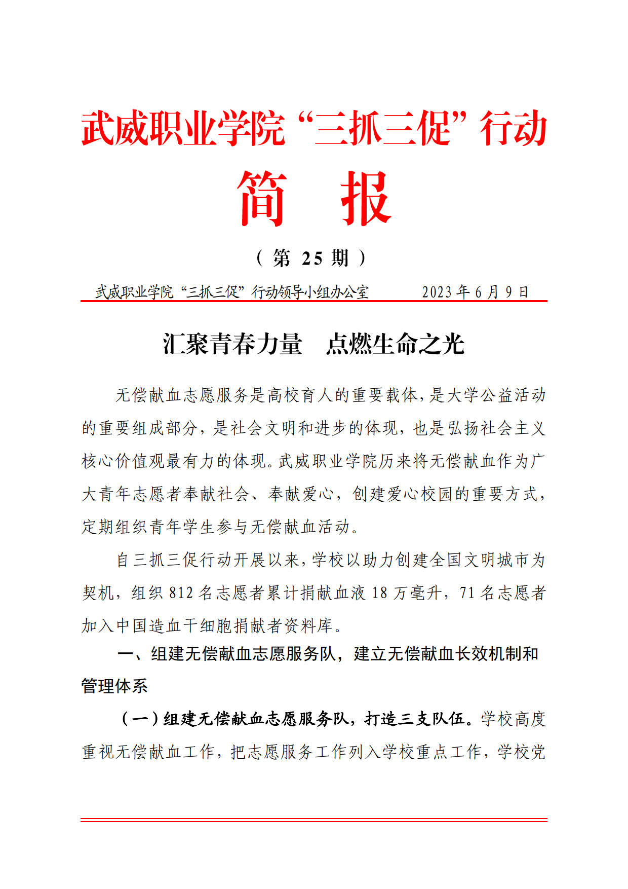 簡報第25期:匯聚青春力量 點燃生命之光